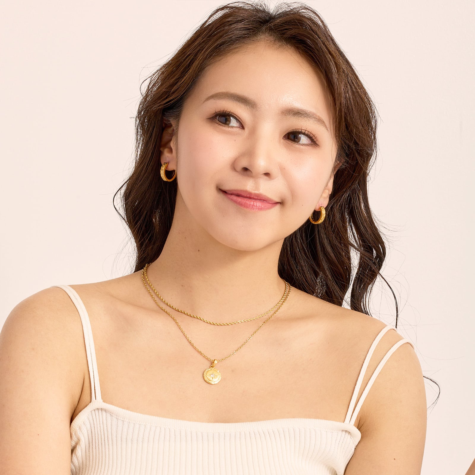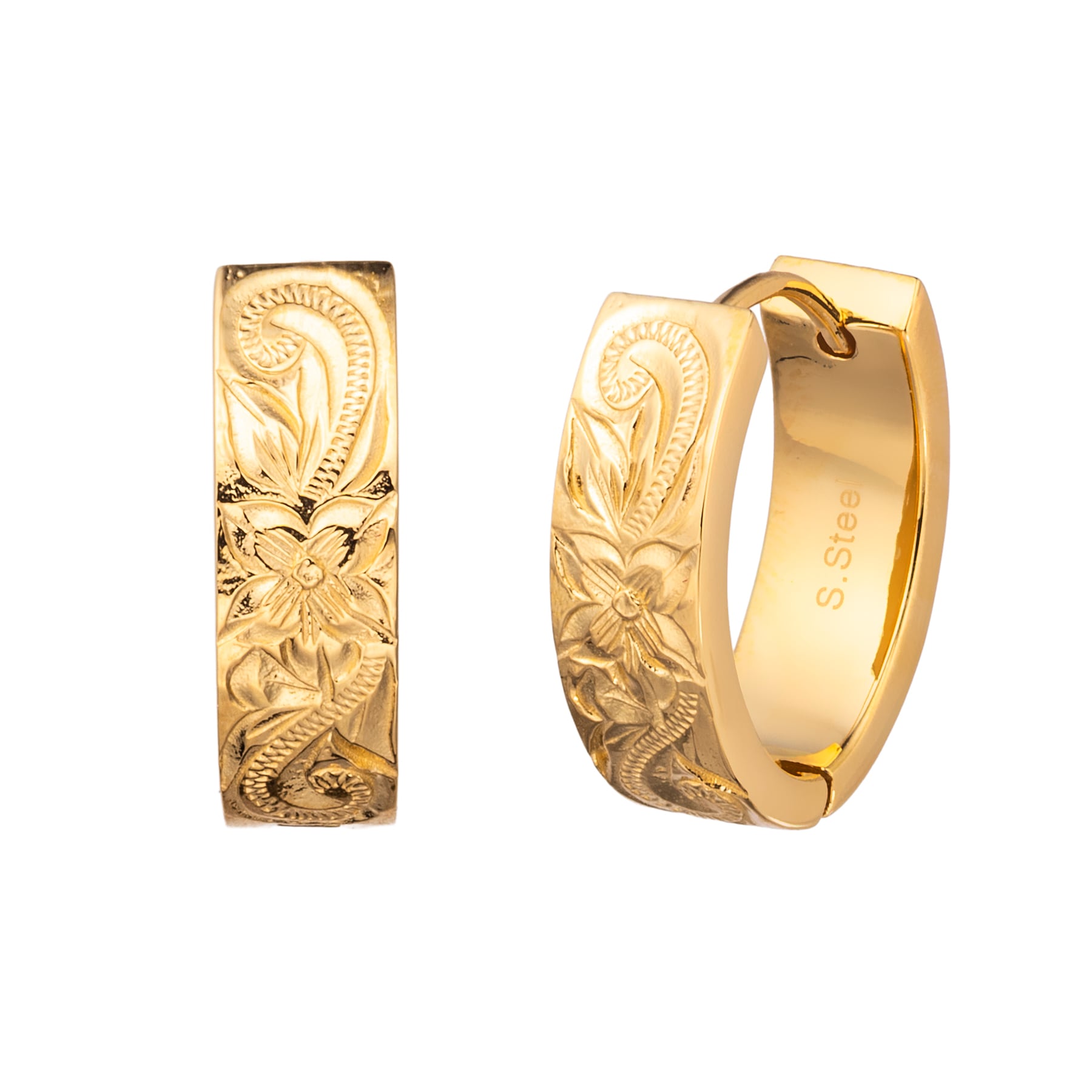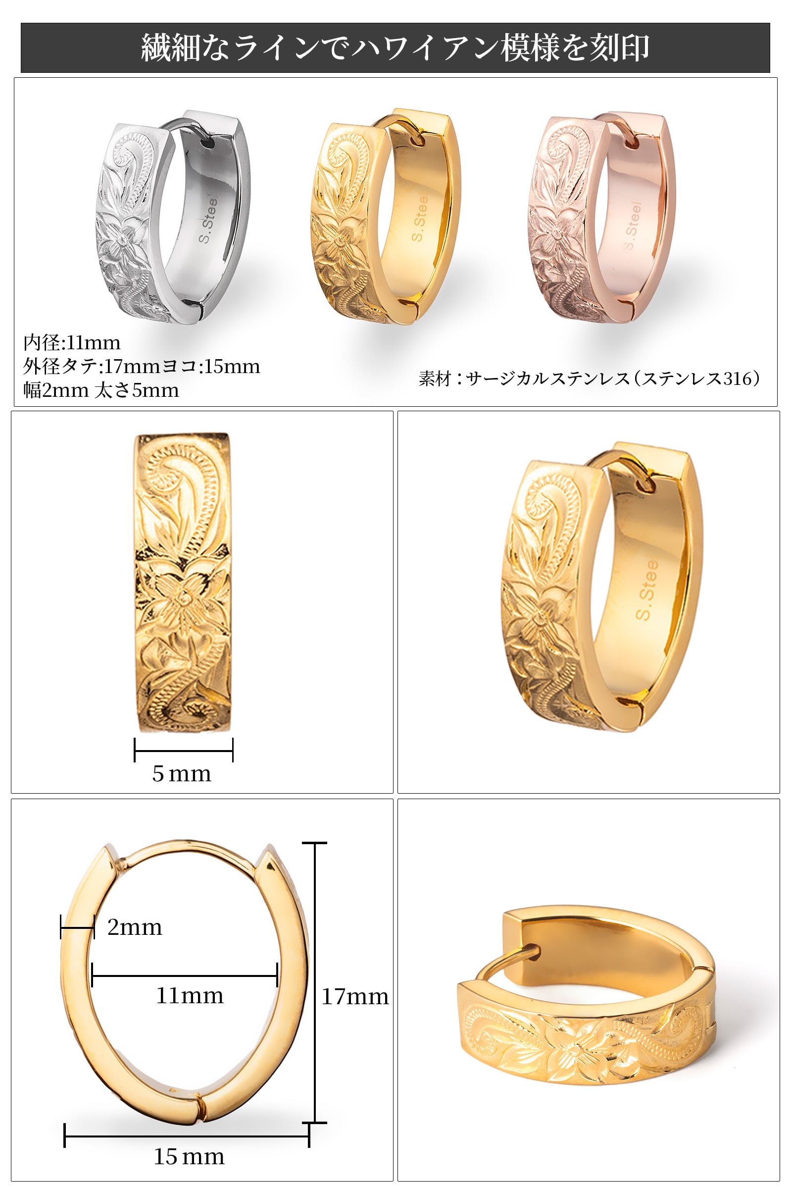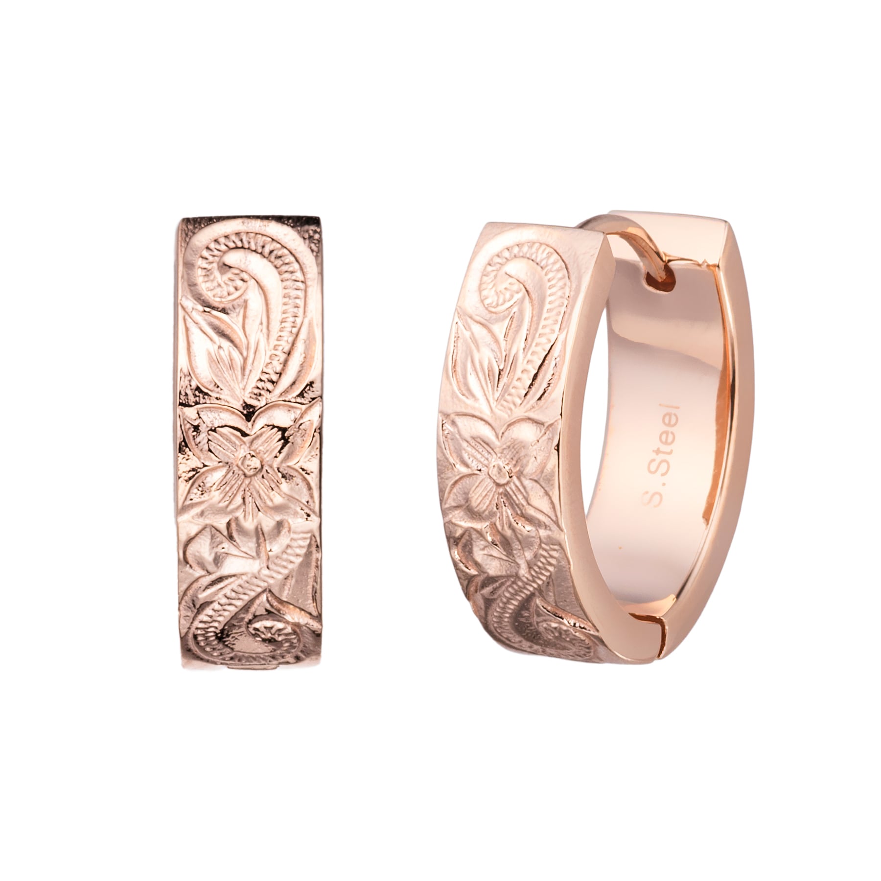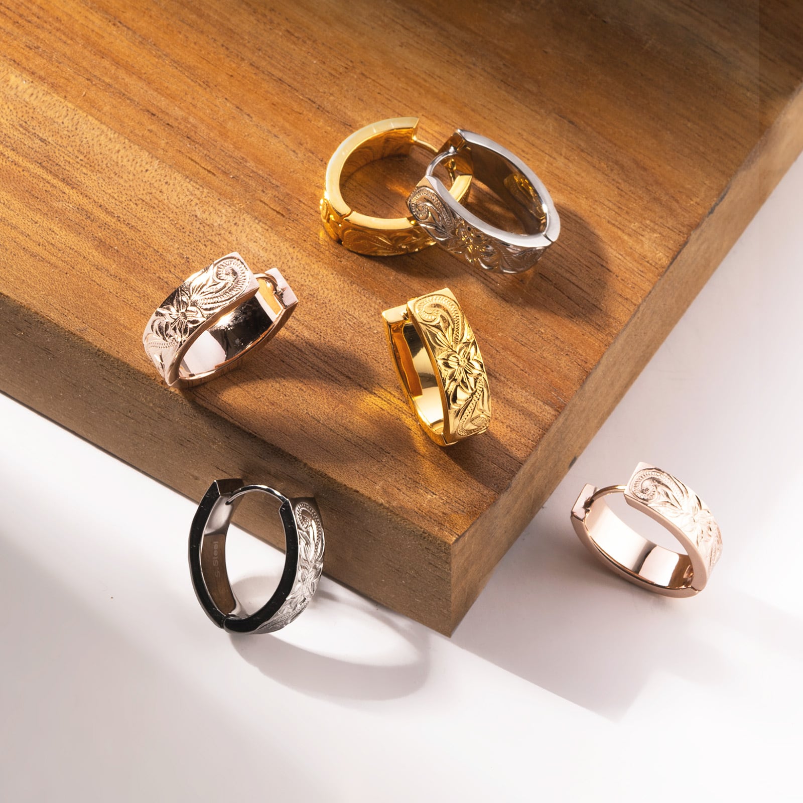 程よい中サイズのフープに太さを持たせ繊細にハワイアン彫刻を施したことで、きらめきと華やかさを演出
