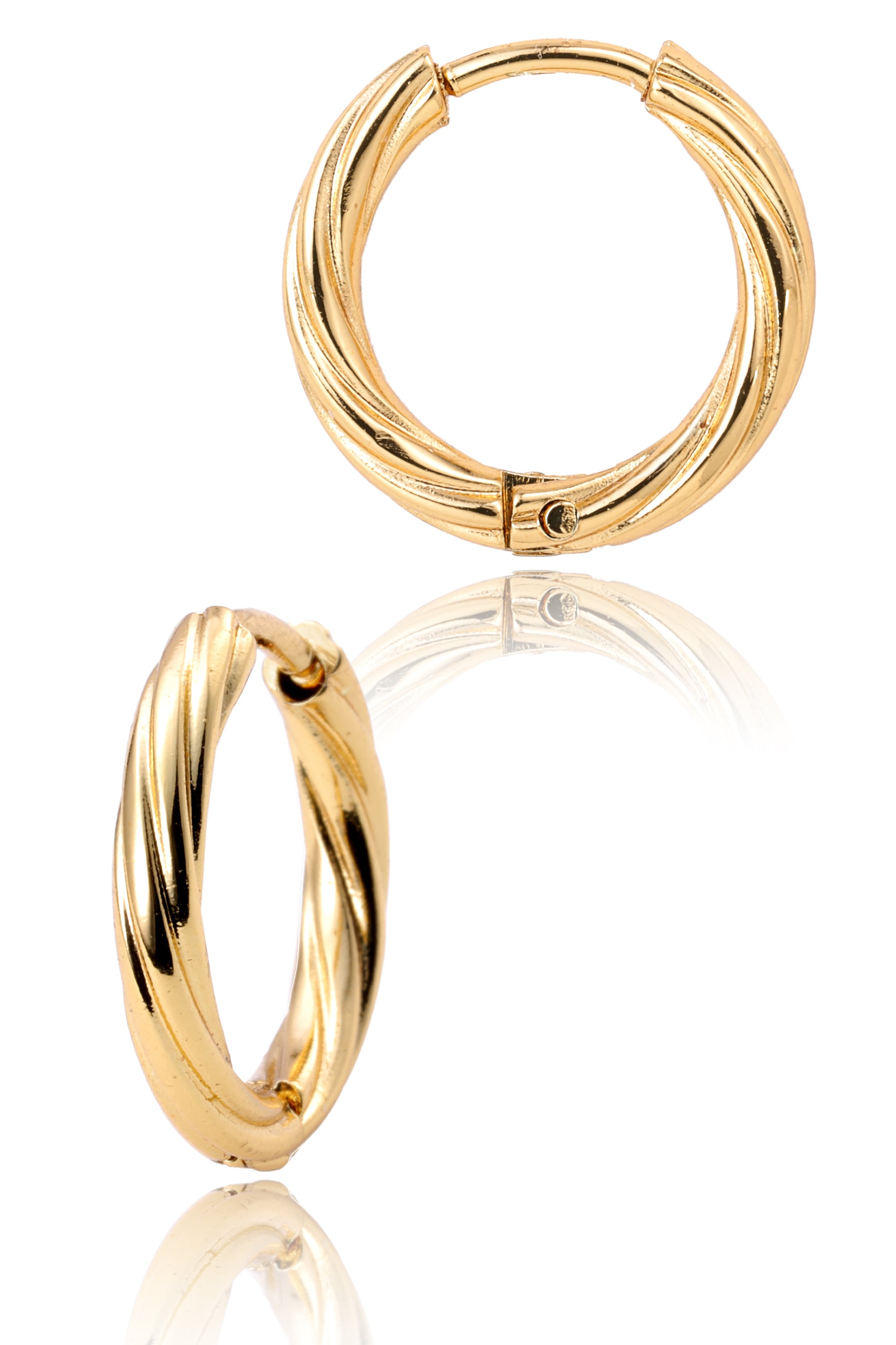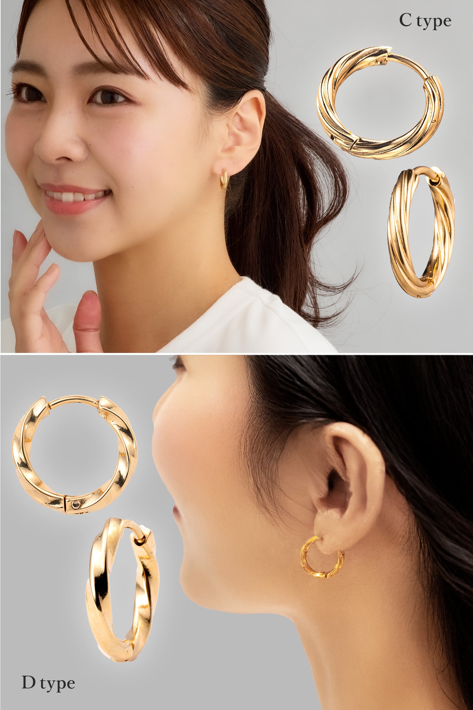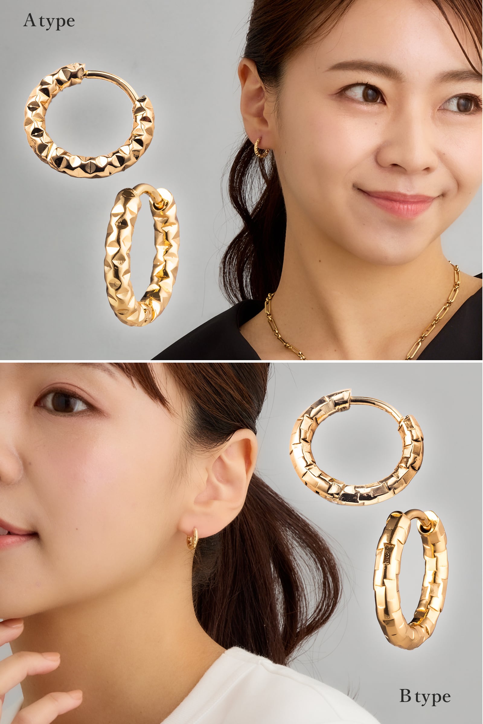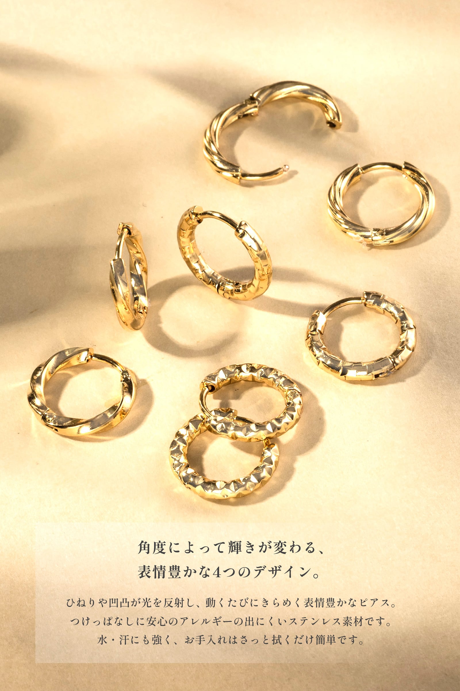 ひねりや凹凸が光を反射し、動くたびにきらめく表情豊かなピアス。