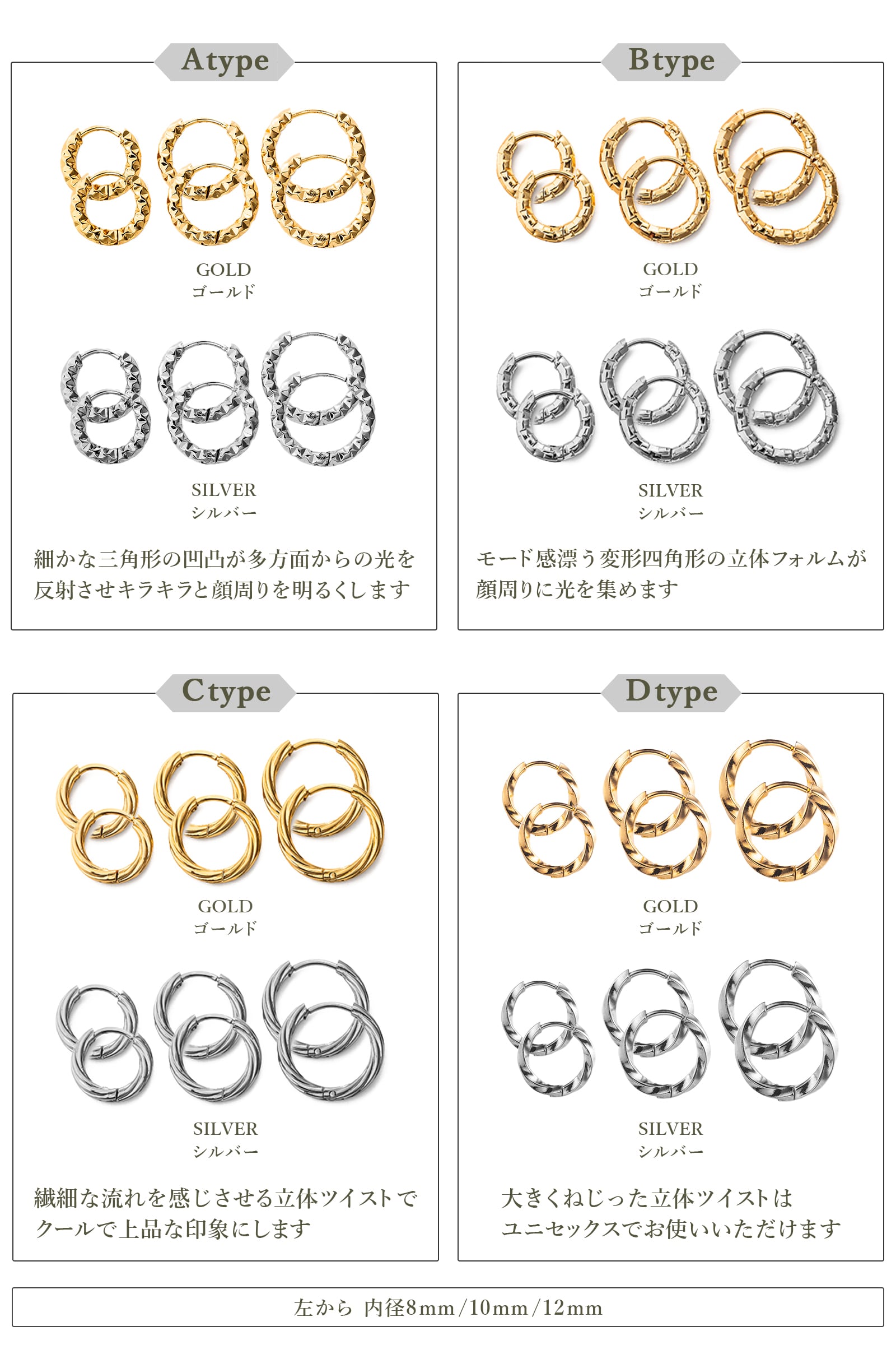 ピアス フープピアス リングピアス メンズ レディース 三角カット カット入り ステンレス つけっぱなし 錆びない 小ぶり 小さい 小さめ 中折れ 両耳 8mm 10mm 12mm シルバー ゴールド