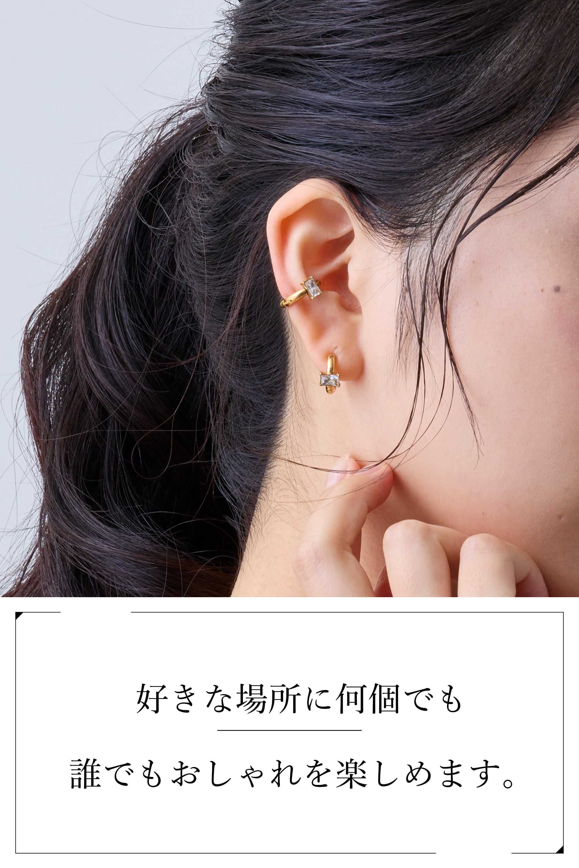 挟むタイプなので耳の形、サイズに合わせられるので痛くなりにくく着用がしやすいイヤーカフです。