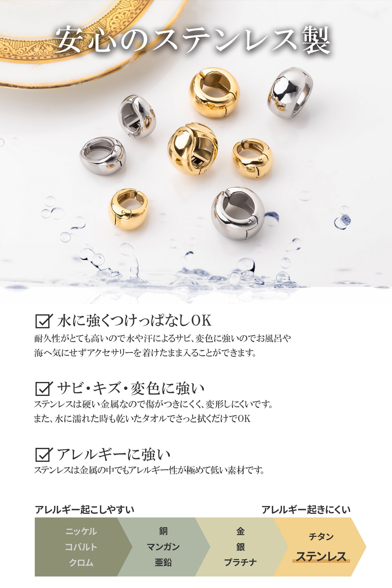 つけっぱなしに安心のアレルギーの出にくいステンレス素材です。