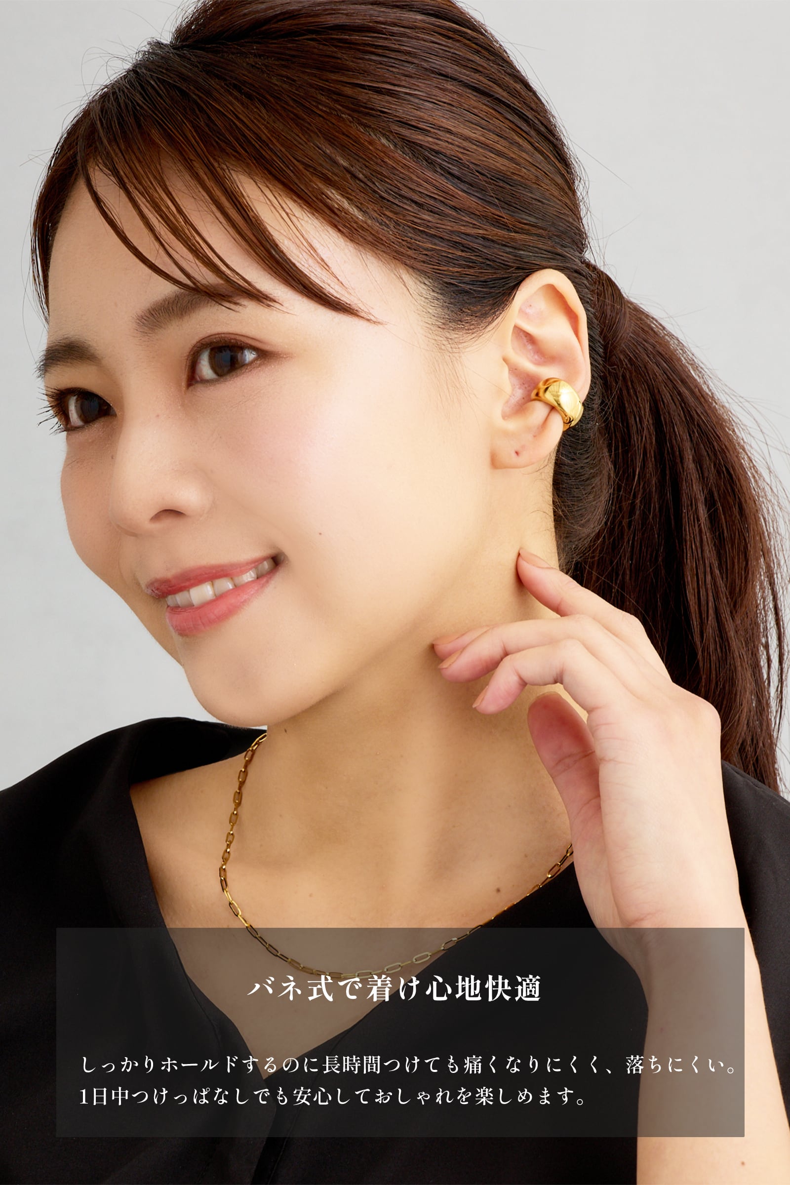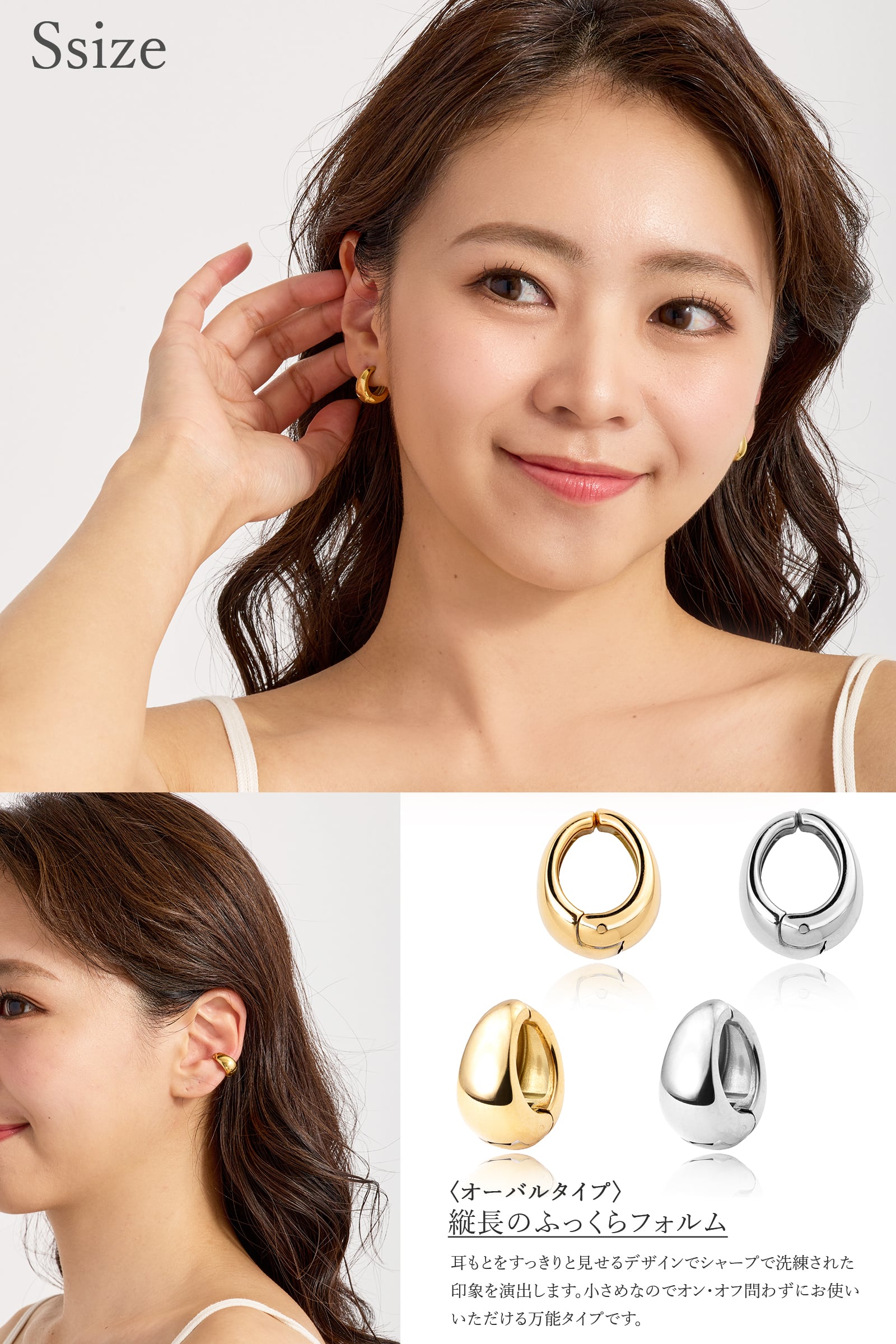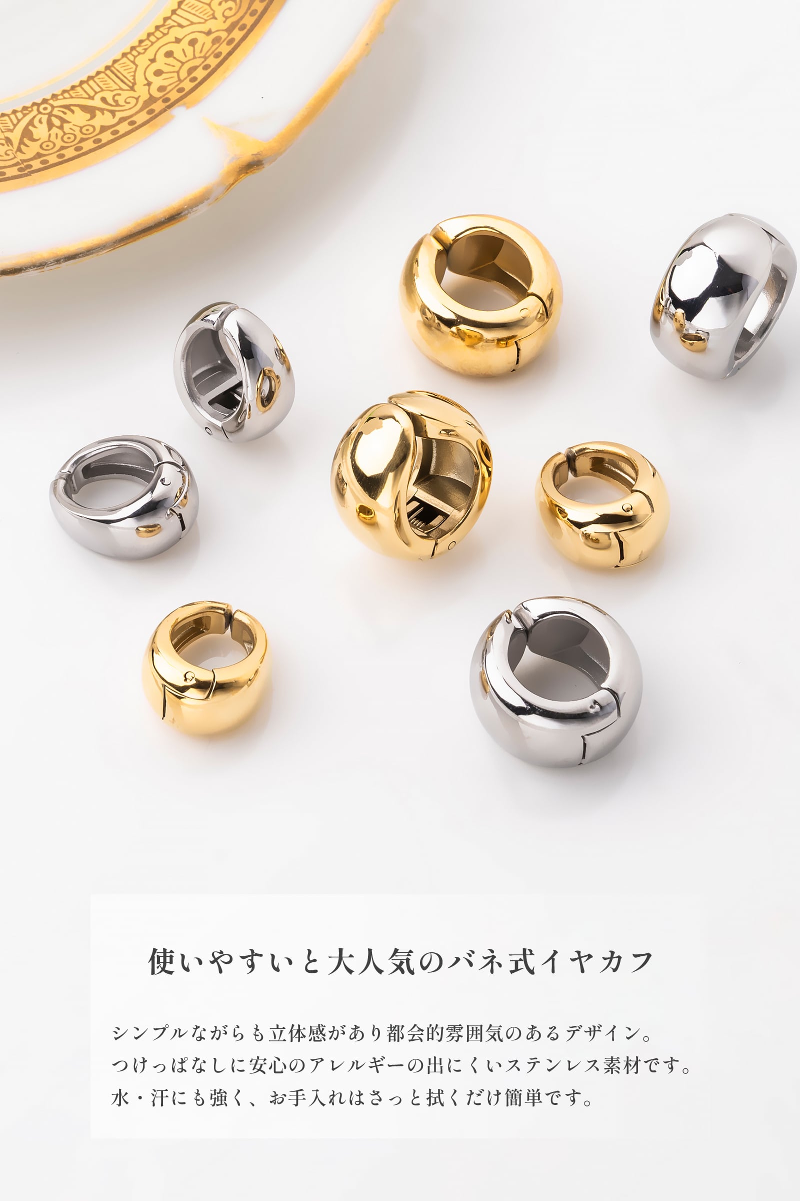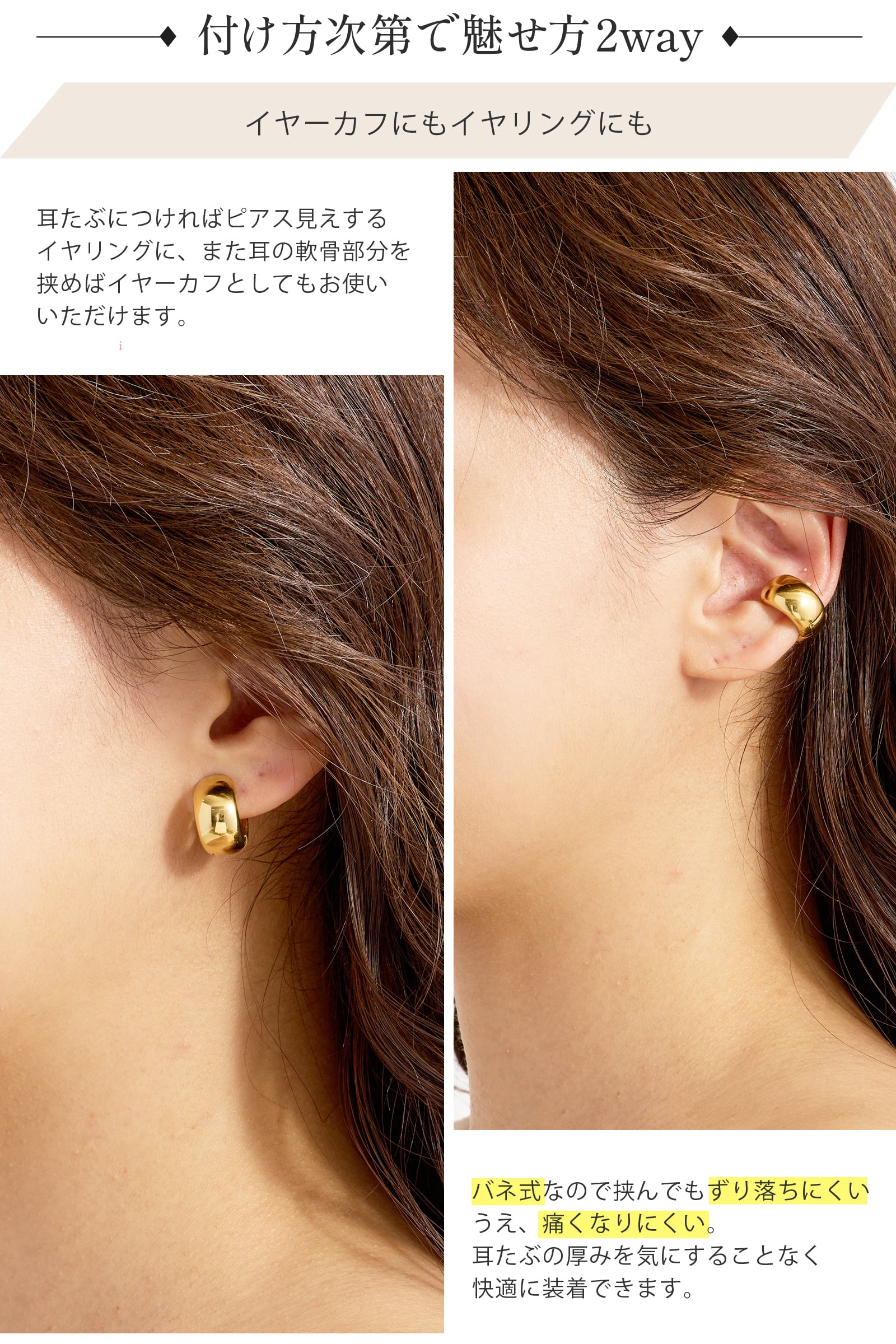 イヤーカフ イヤーカフス カフイヤリング レディース ぷっくり 太め バネ式 バネ オーバル 雫 イヤカフ ステンレス 2タイプ 2way ピアス見え つけっぱなし 錆びない 小ぶり 落ちない 軟骨 両耳 片耳 シルバー ゴールド