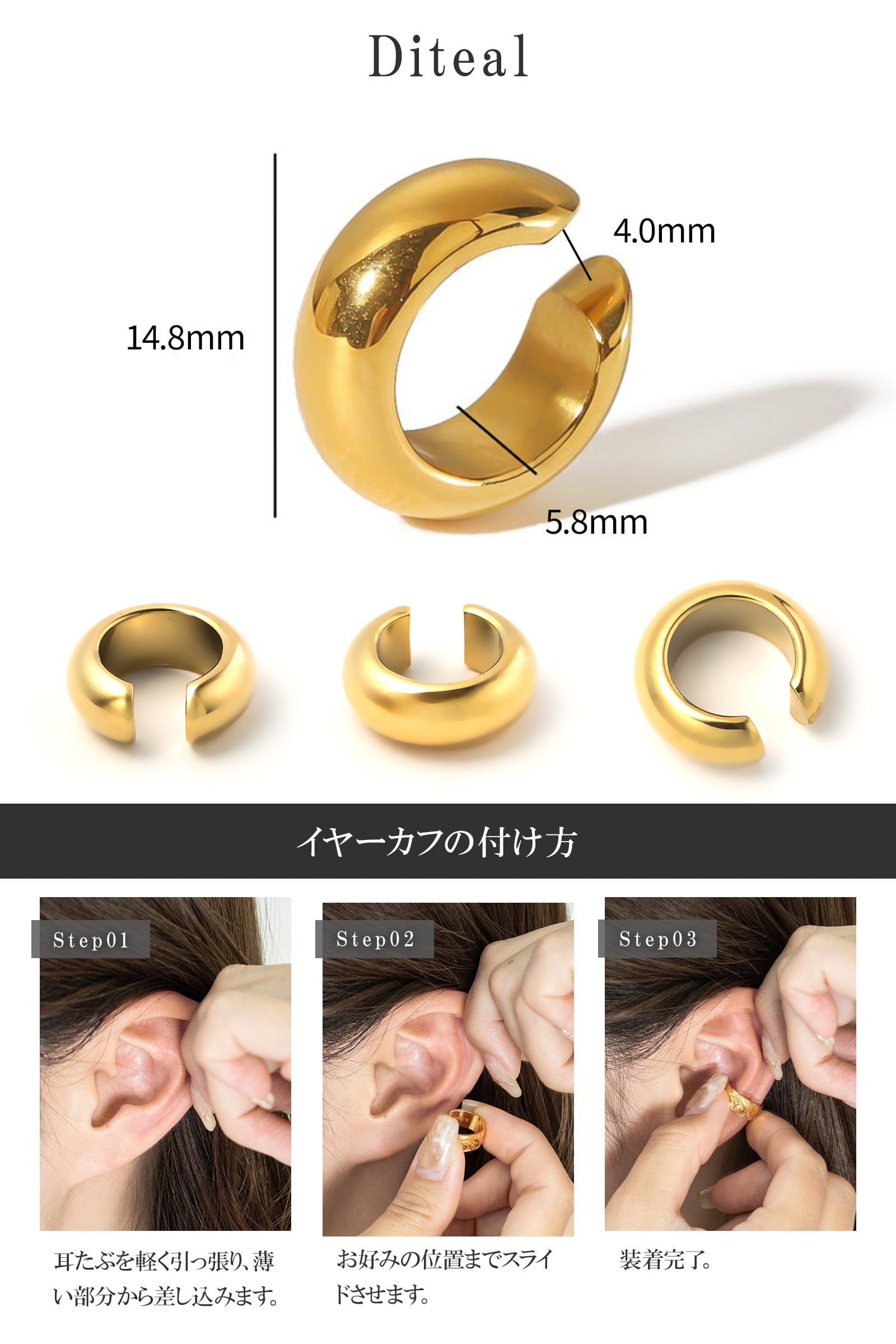 【シンプルな太幅イヤーカフ】