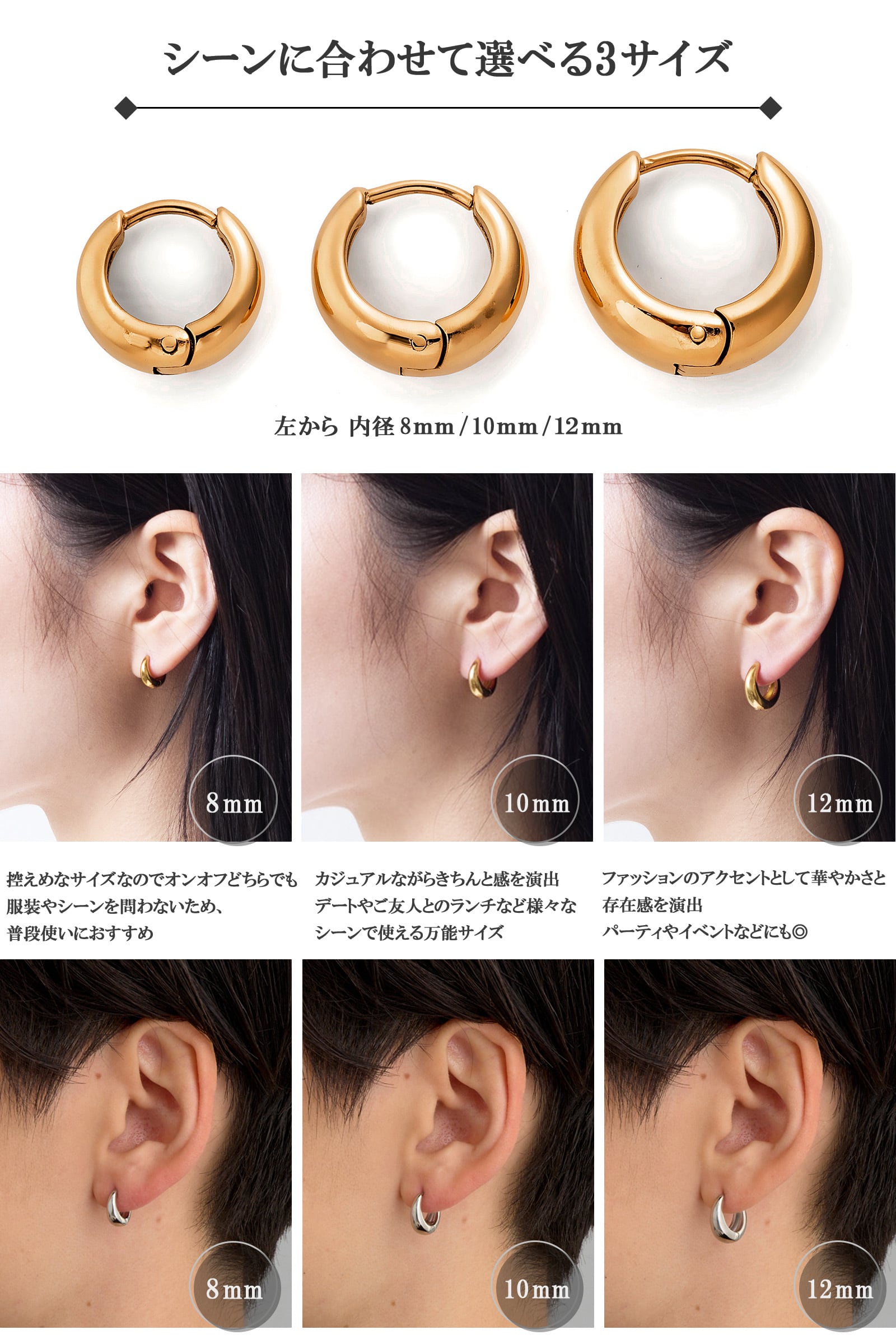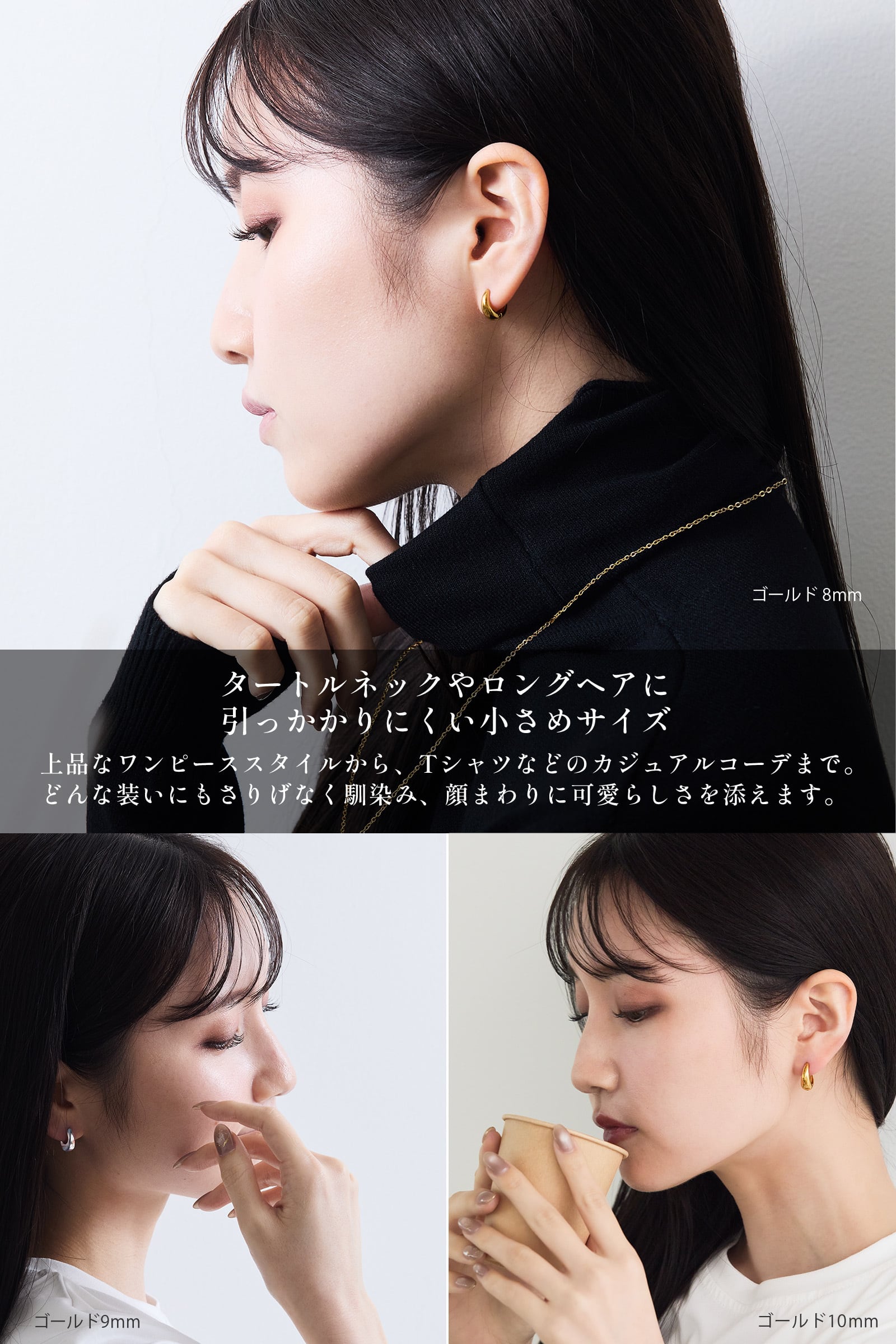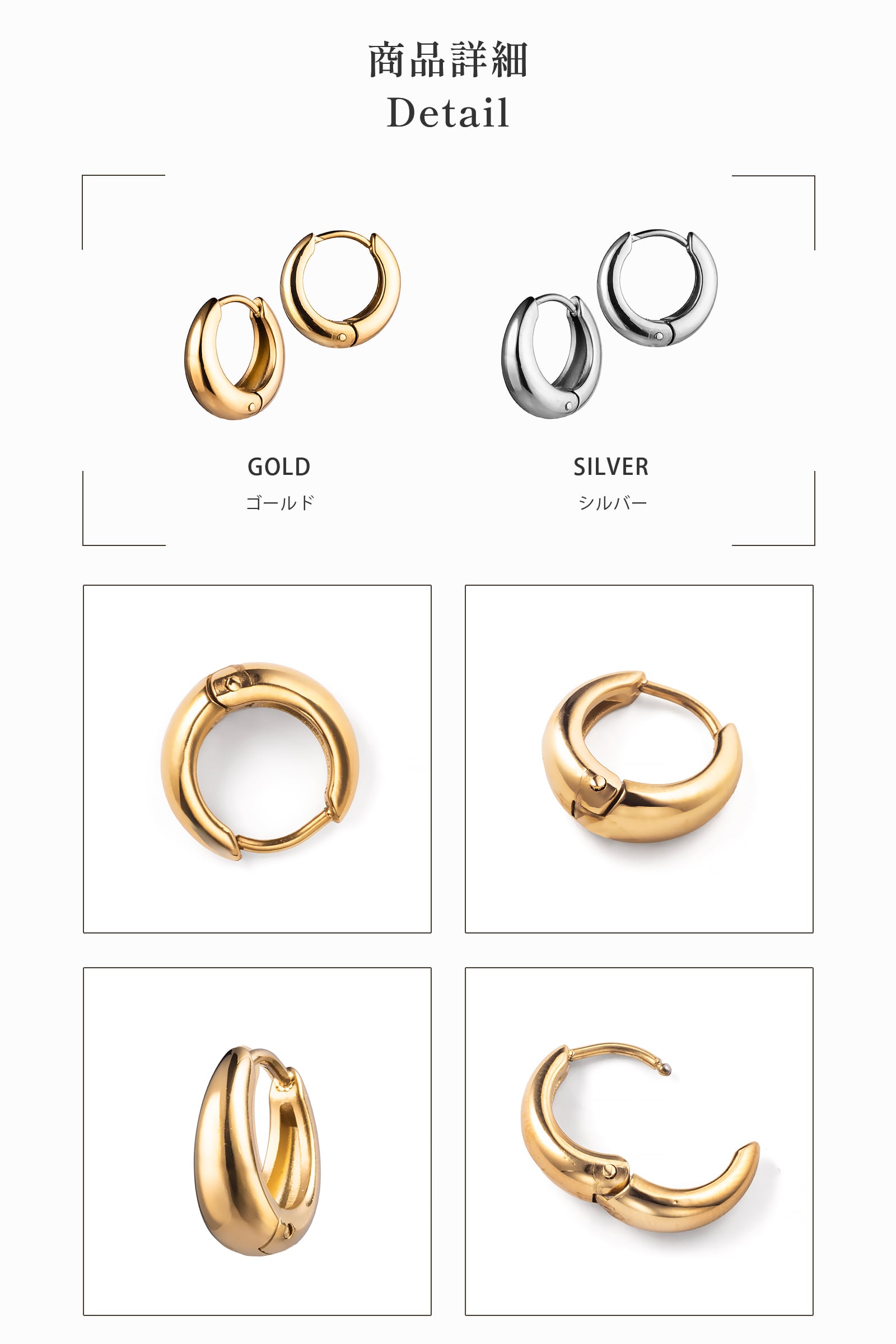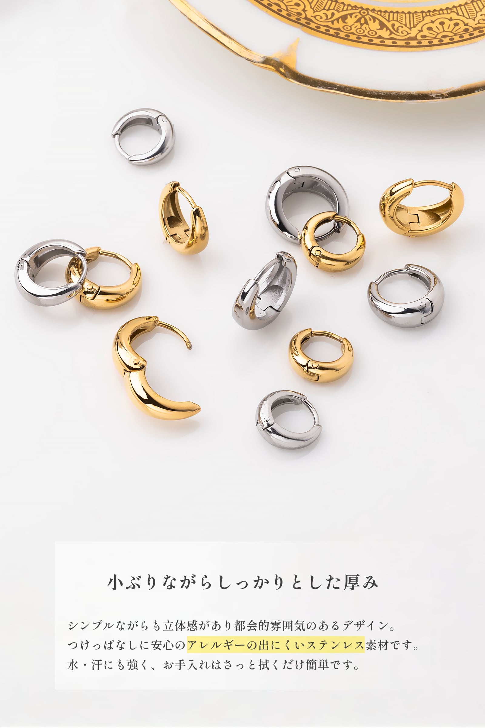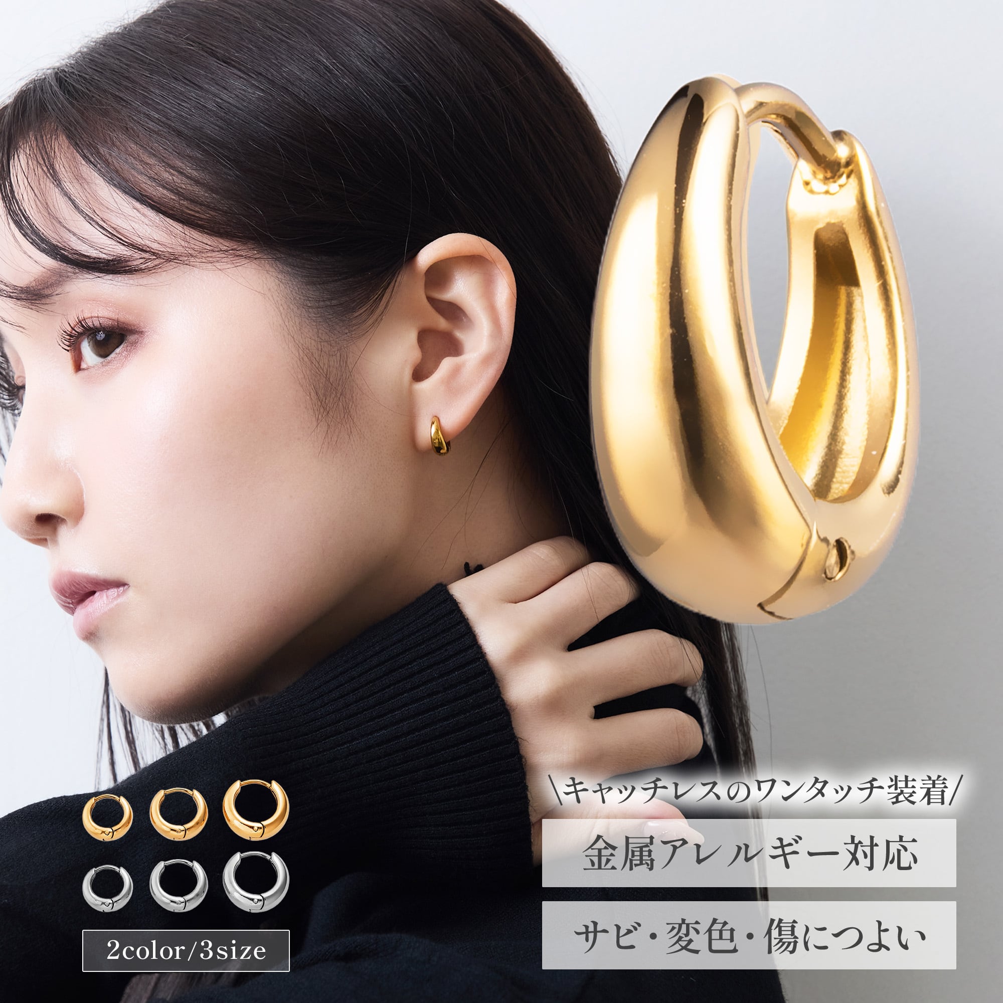 フープ ピアス レディース ステンレス つけっぱなし 錆びない ドロップ ぷっくりピアス キャッチレス 中折れ 小さめ 両耳用 シルバー ゴールド