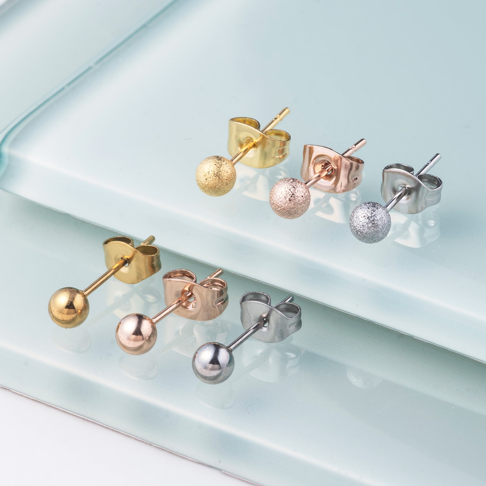 シンプルタイプ、マッド加工タイプが各色シルバー、ゴールド、ピンクゴールドの6タイプ。ボールサイズが2mm 3mm 4mm 5mm の4サイズの計24種類からお選びいただけます。