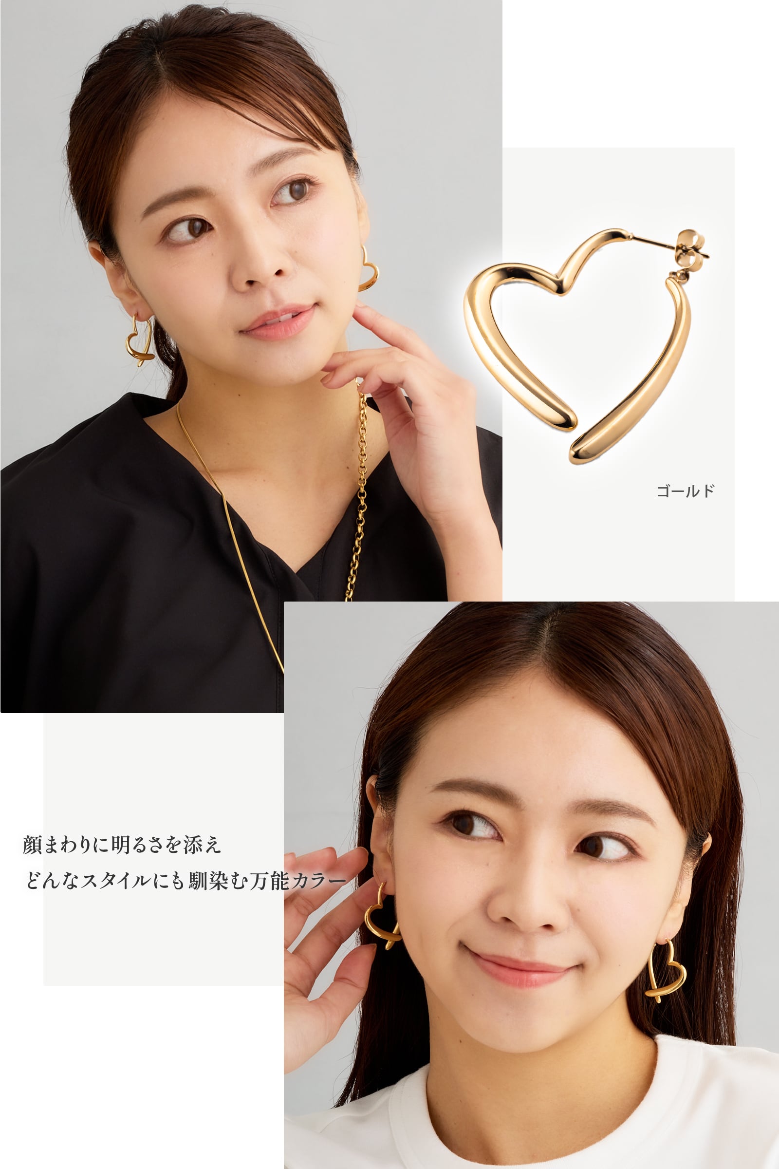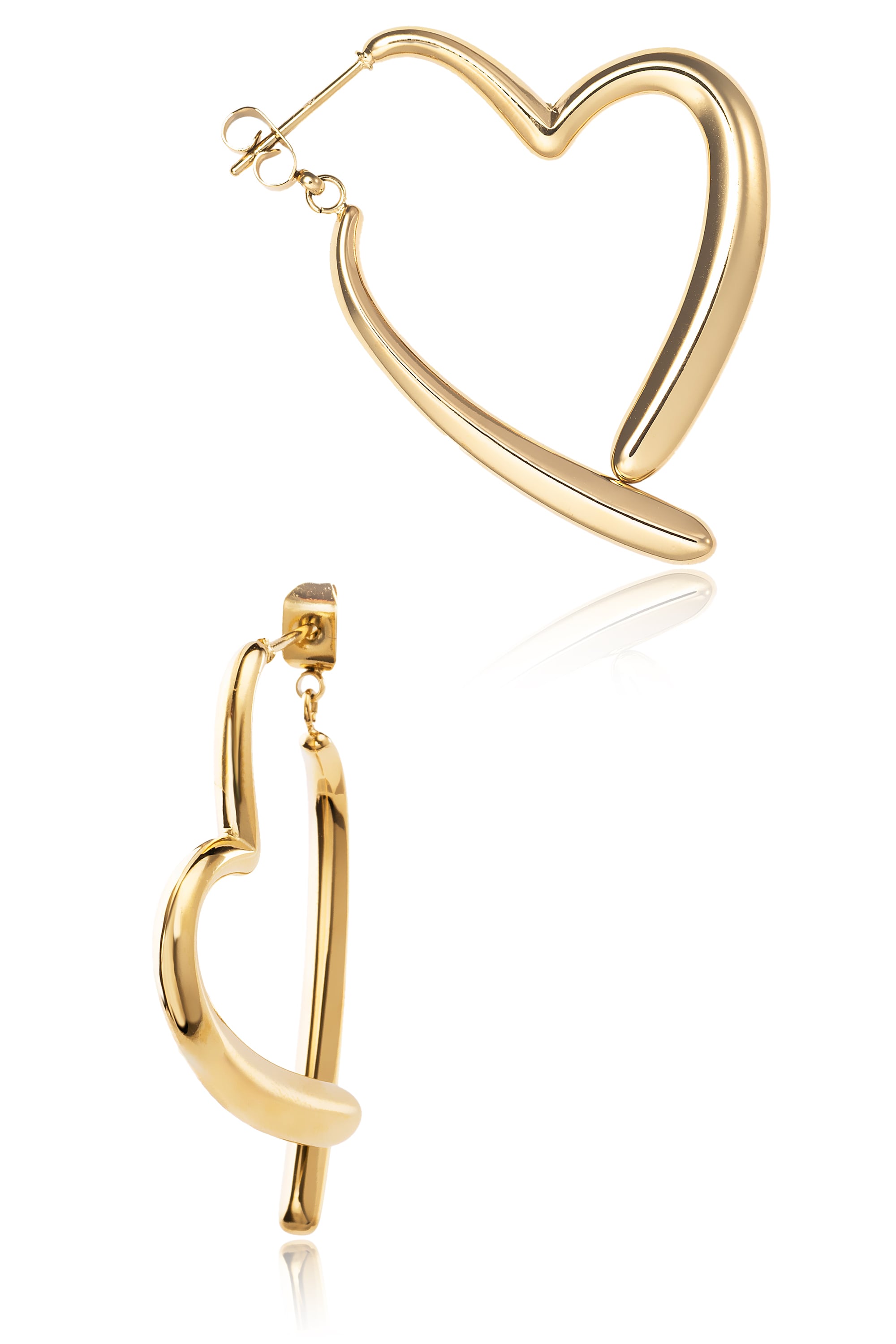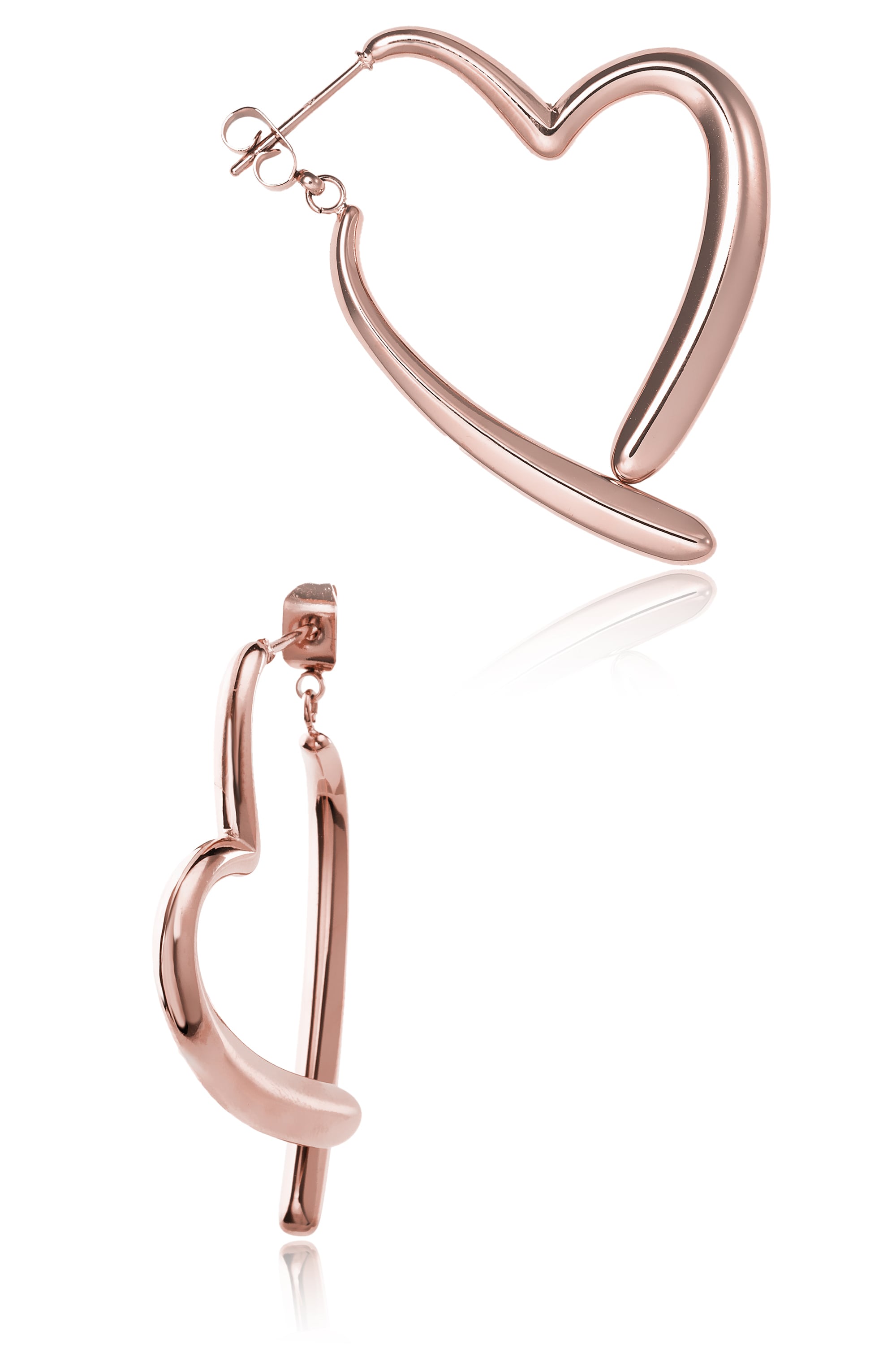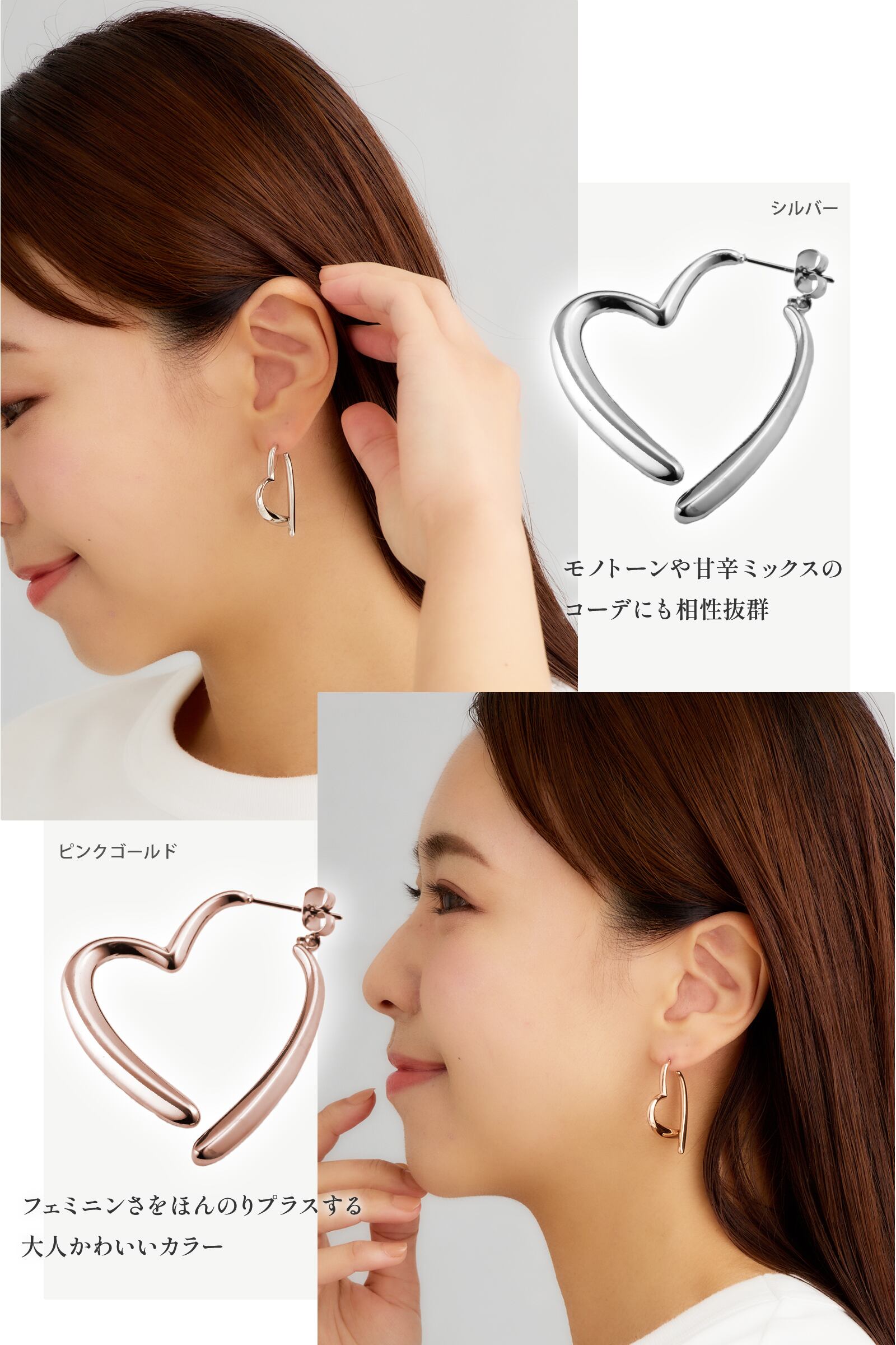 ピアスの前後が一体化されてハート型を作りだすユニークなピアス。