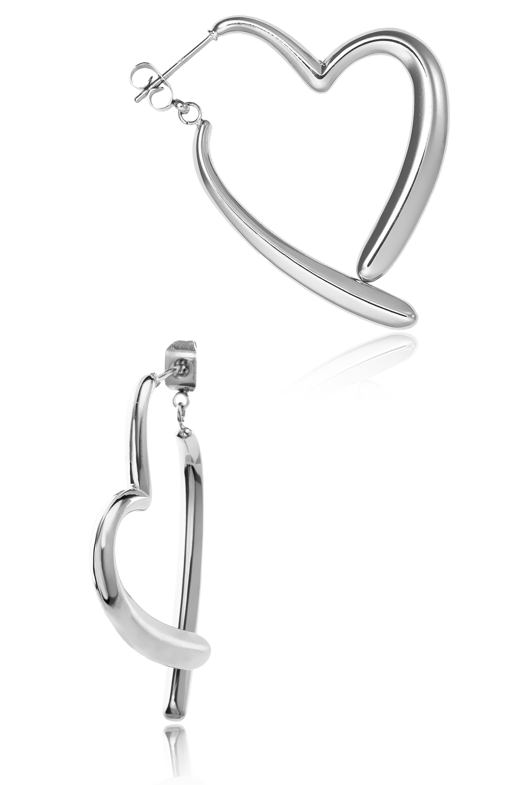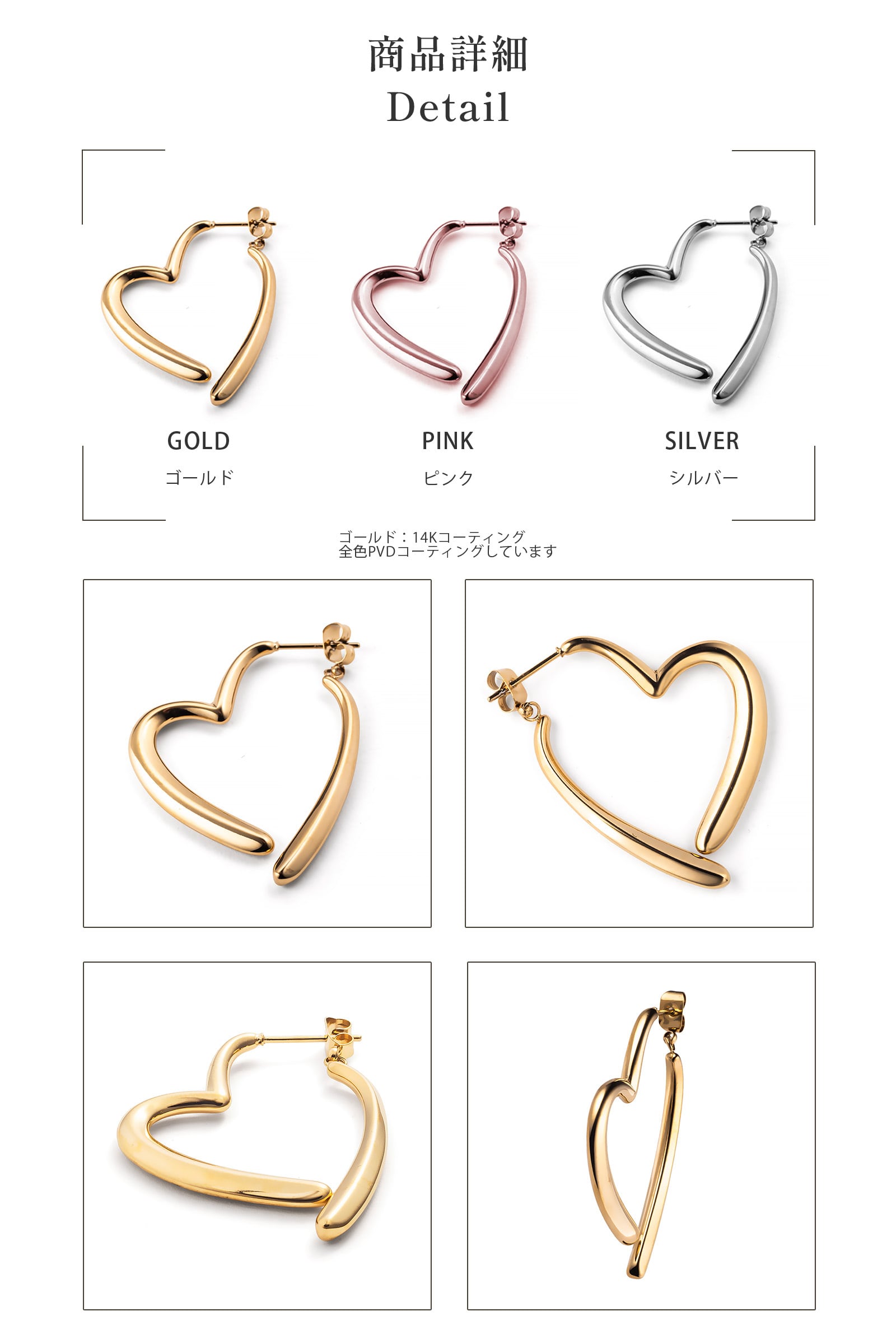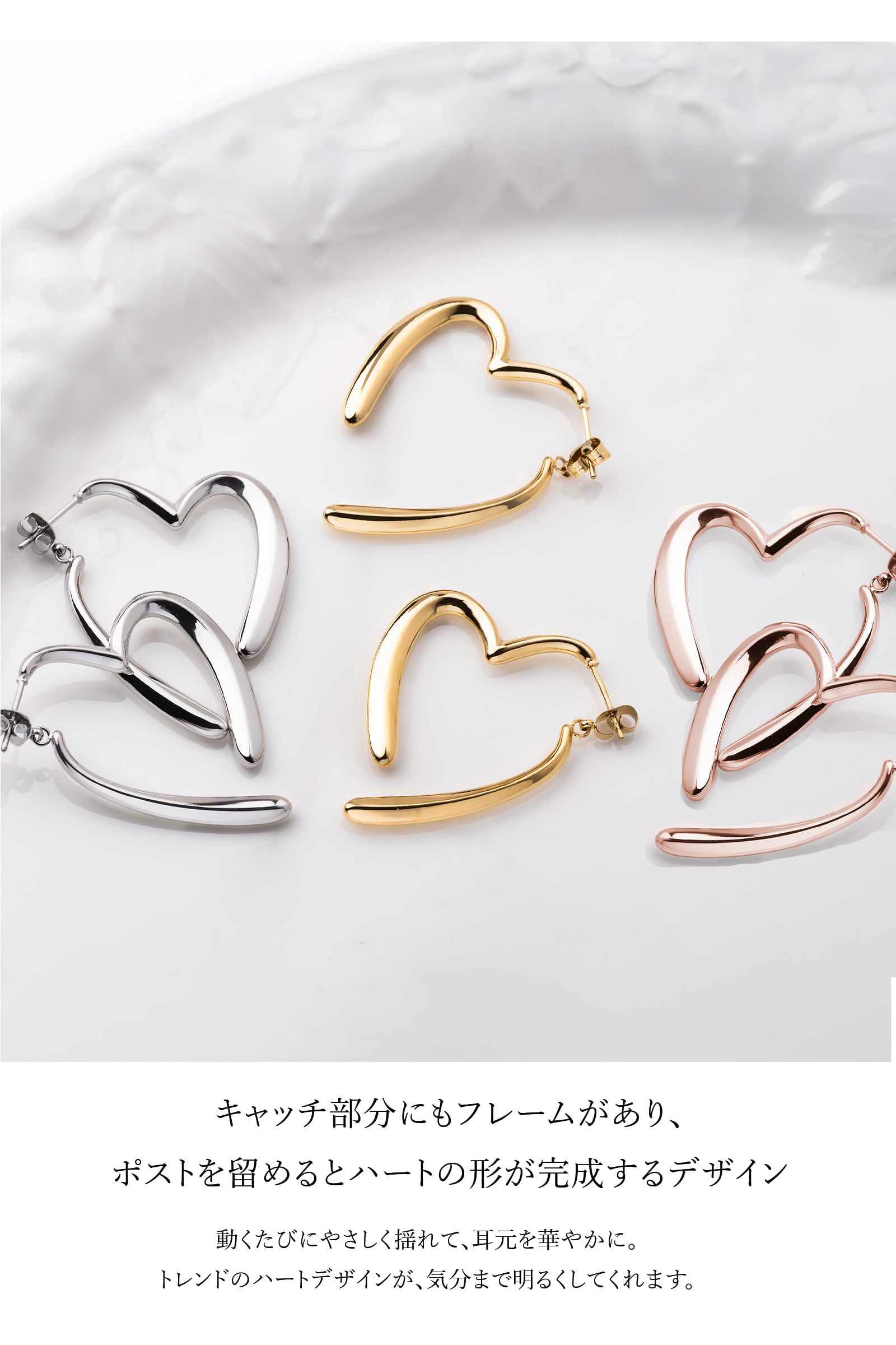 ピアス レディース ハート ハート型 オープンハート ステンレス 可愛い 揺れる ゆらゆら つけっぱなし 錆びない スタッドピアス 大ぶり 大きめ ぶら下がり 両耳 両耳用 シルバー ゴールド