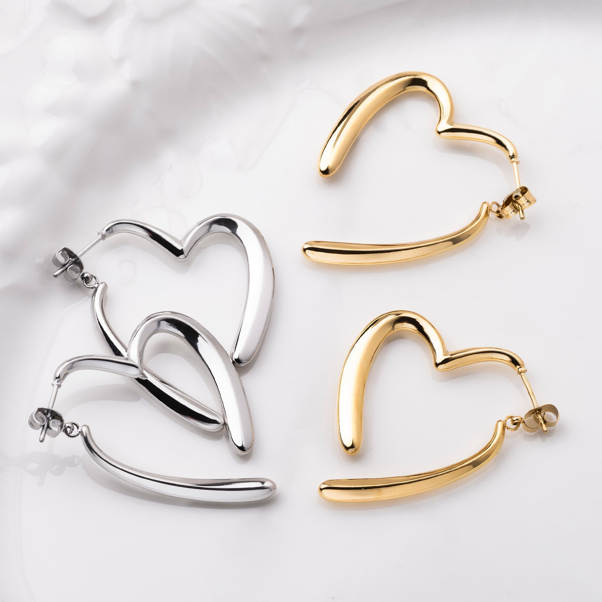 【Puente】ピアス レディース ハート ハート型 オープンハート ステンレス 可愛い 揺れる ゆらゆら つけっぱなし 錆びない スタッドピアス 大ぶり 大きめ ぶら下がり 両耳 両耳用 シルバー ゴールド