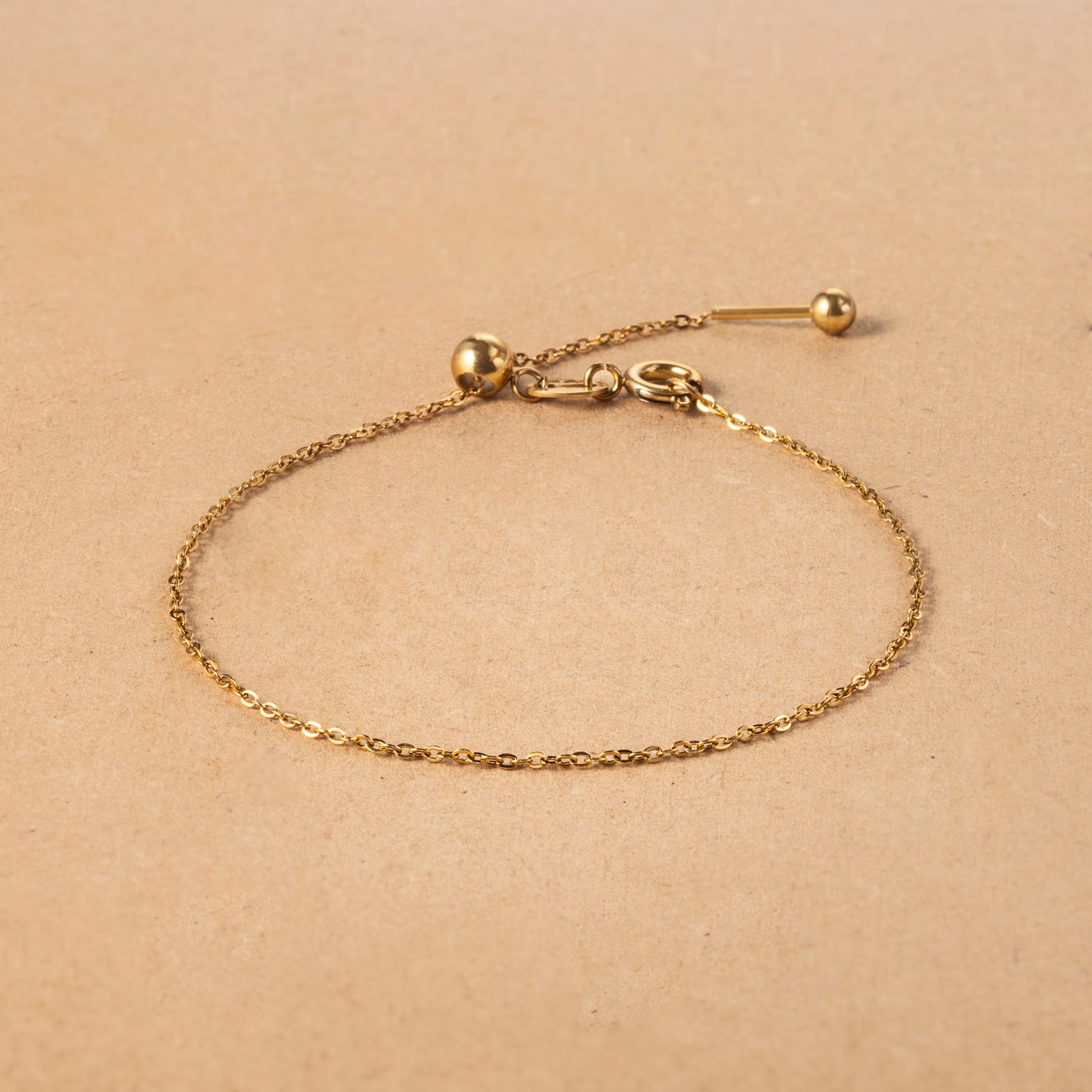 アジャスターで自由に調節できるのでゆったりもぴったりもサイズ感を合わせて着用可能なブレスレットです。