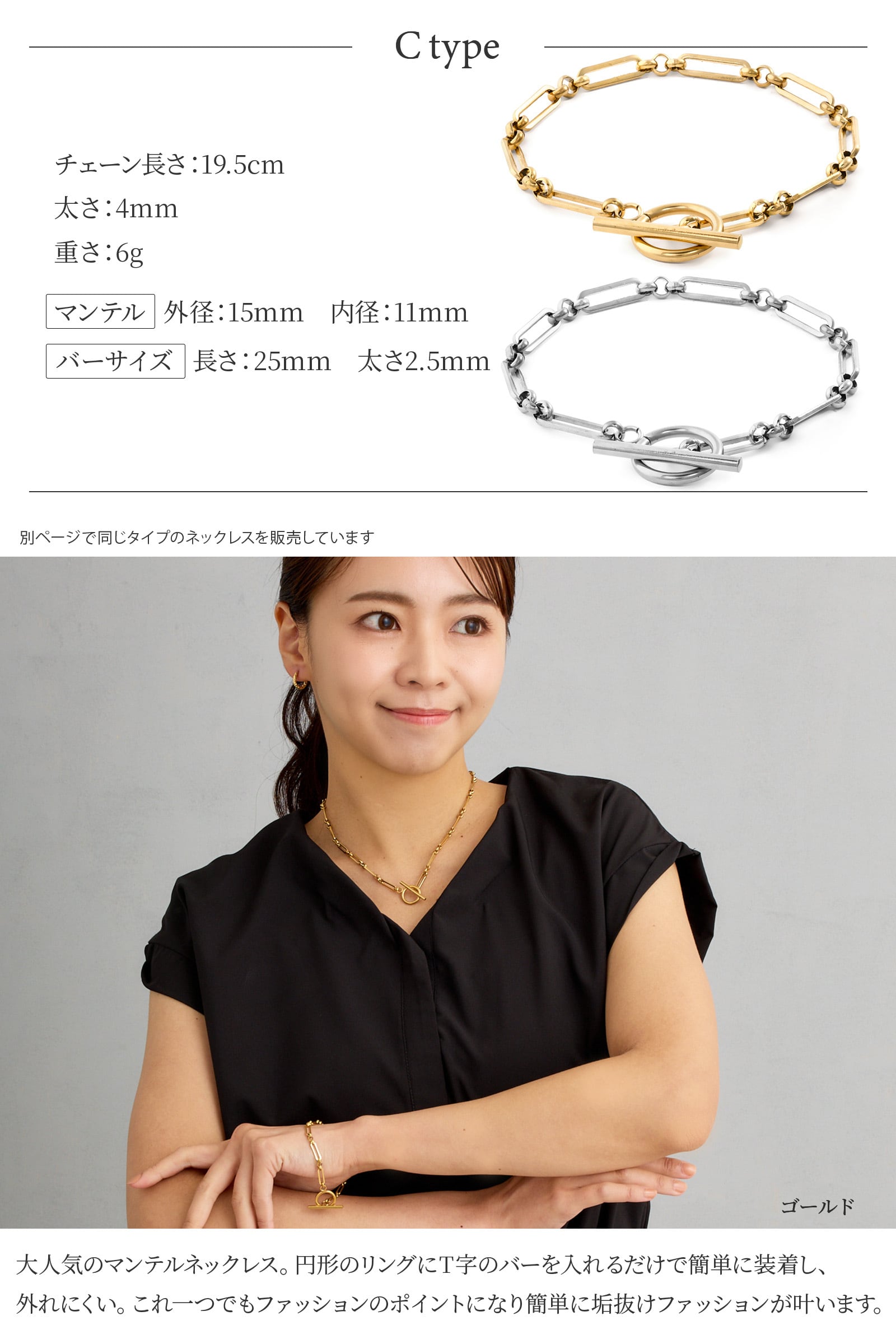 ブレスレット レディース マンテル マンテルブレスレット オーバル オーバルネックレス オーバルチェーン ステンレス サージカルステンレス つけっぱなし 錆びない シンプル 19.5cm シルバー ゴールド