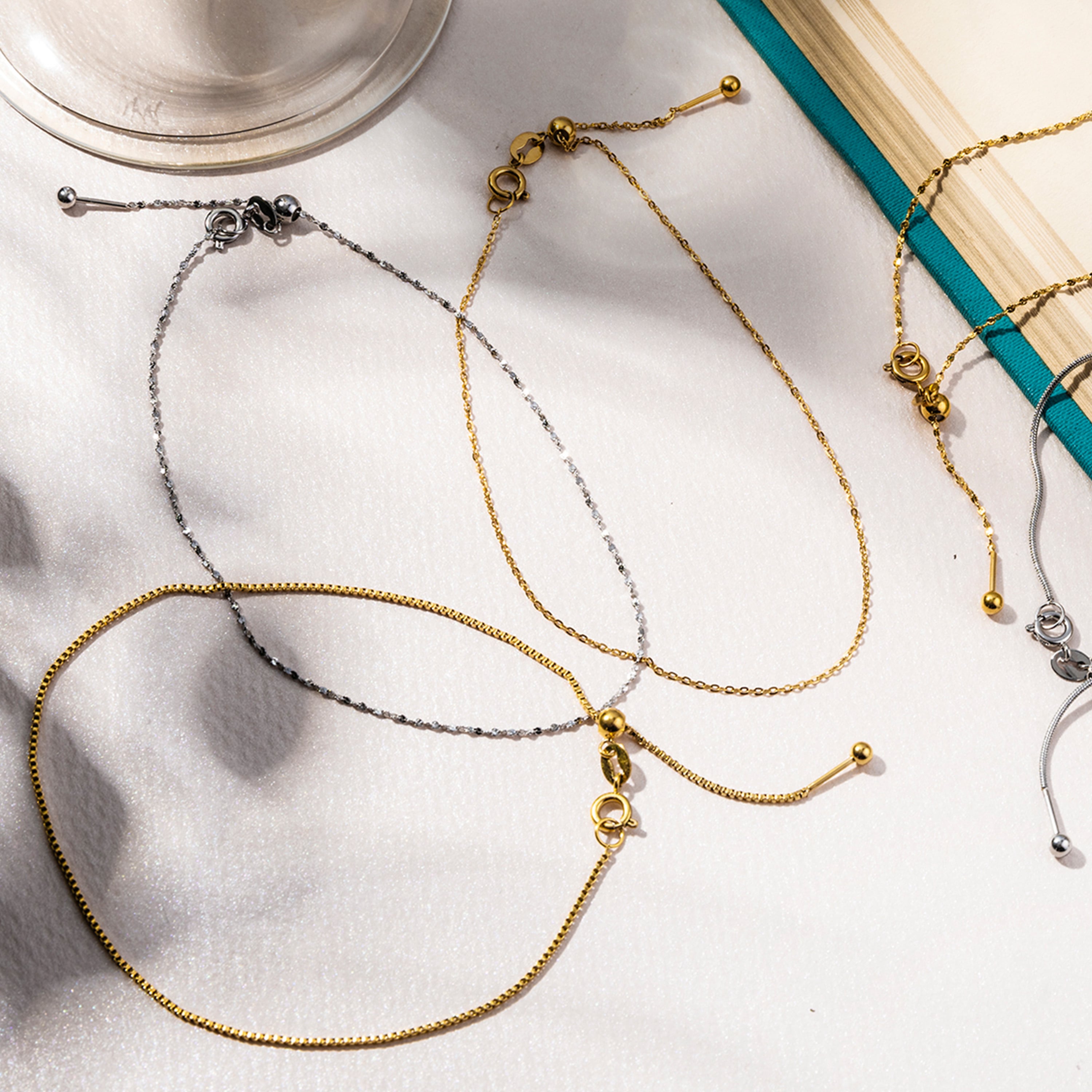 【Puente】Skin Anklet simple thin chain stainless silver gold AN006