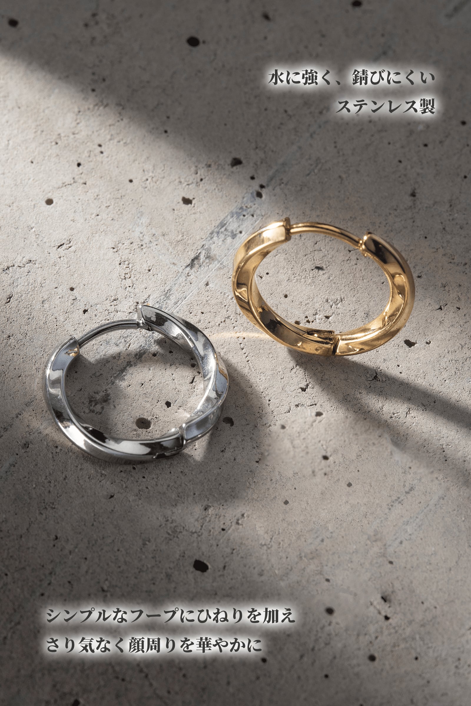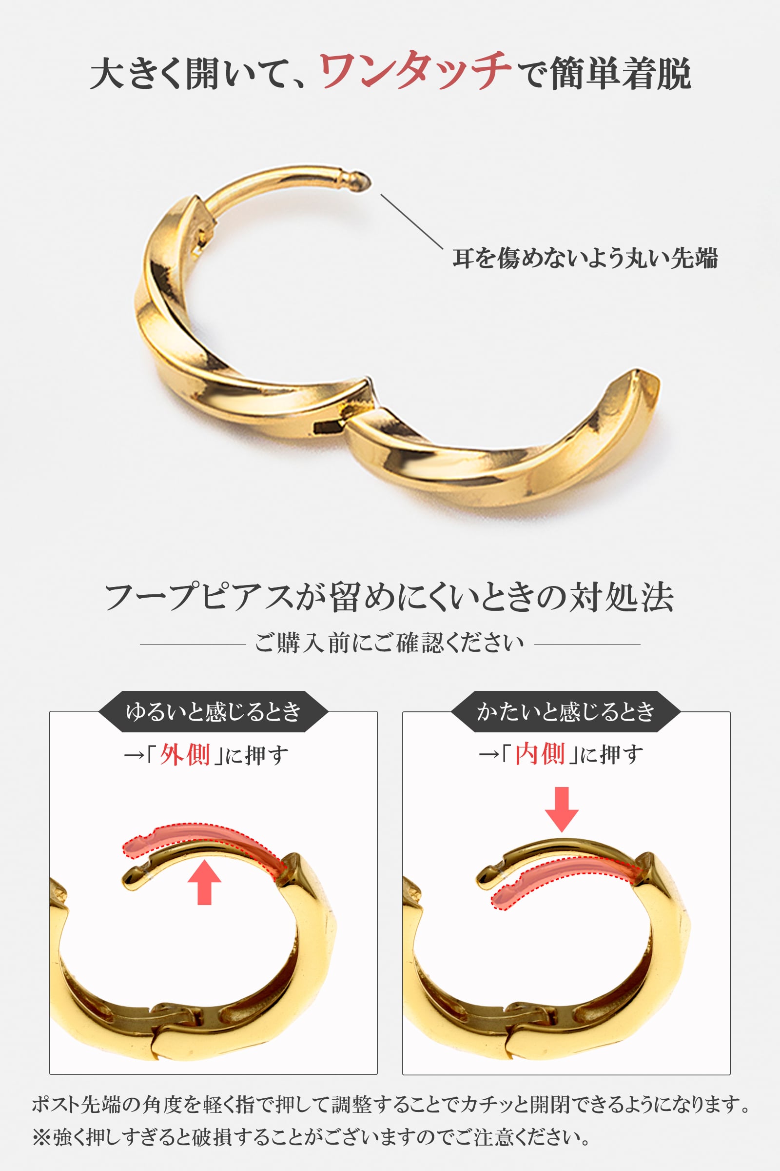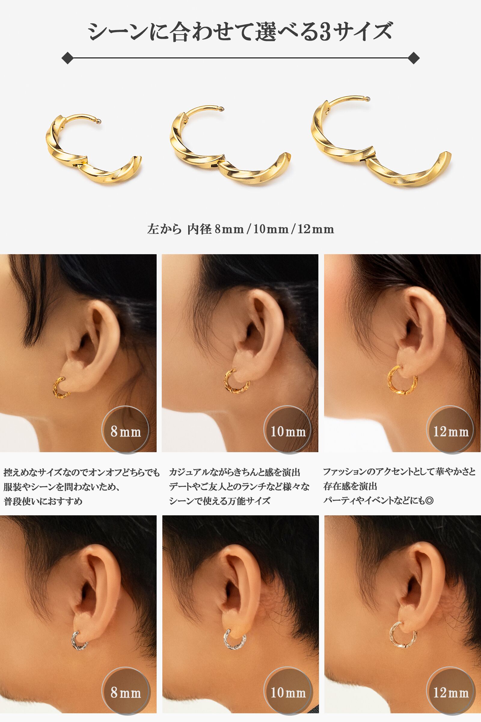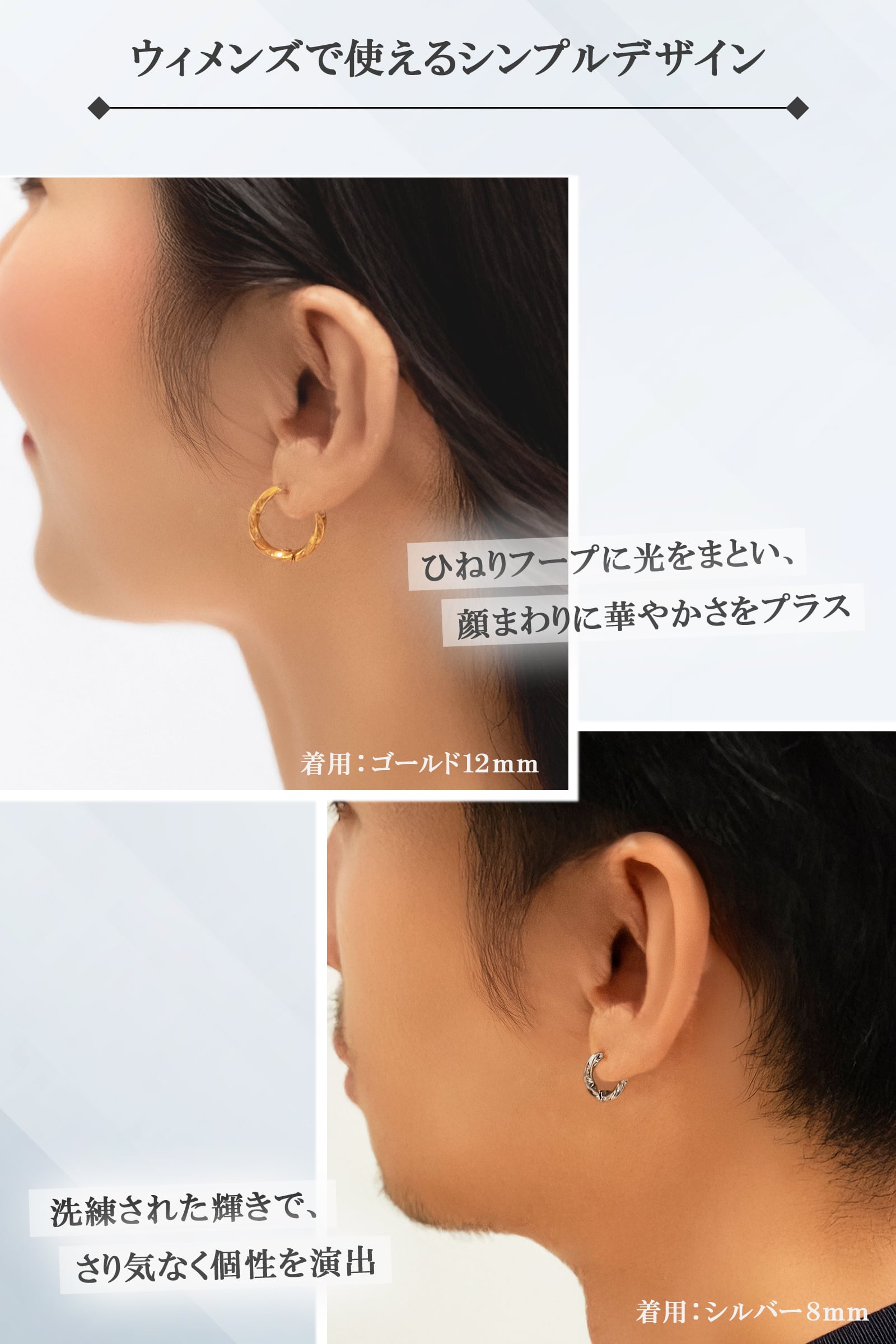 ツイスト フープ ピアス キャッチレス リングピアス ひねり ステンレス 金属アレルギー メンズ レディース ペア シルバー ゴールド 8mm 10mm 12mm 18G 両耳