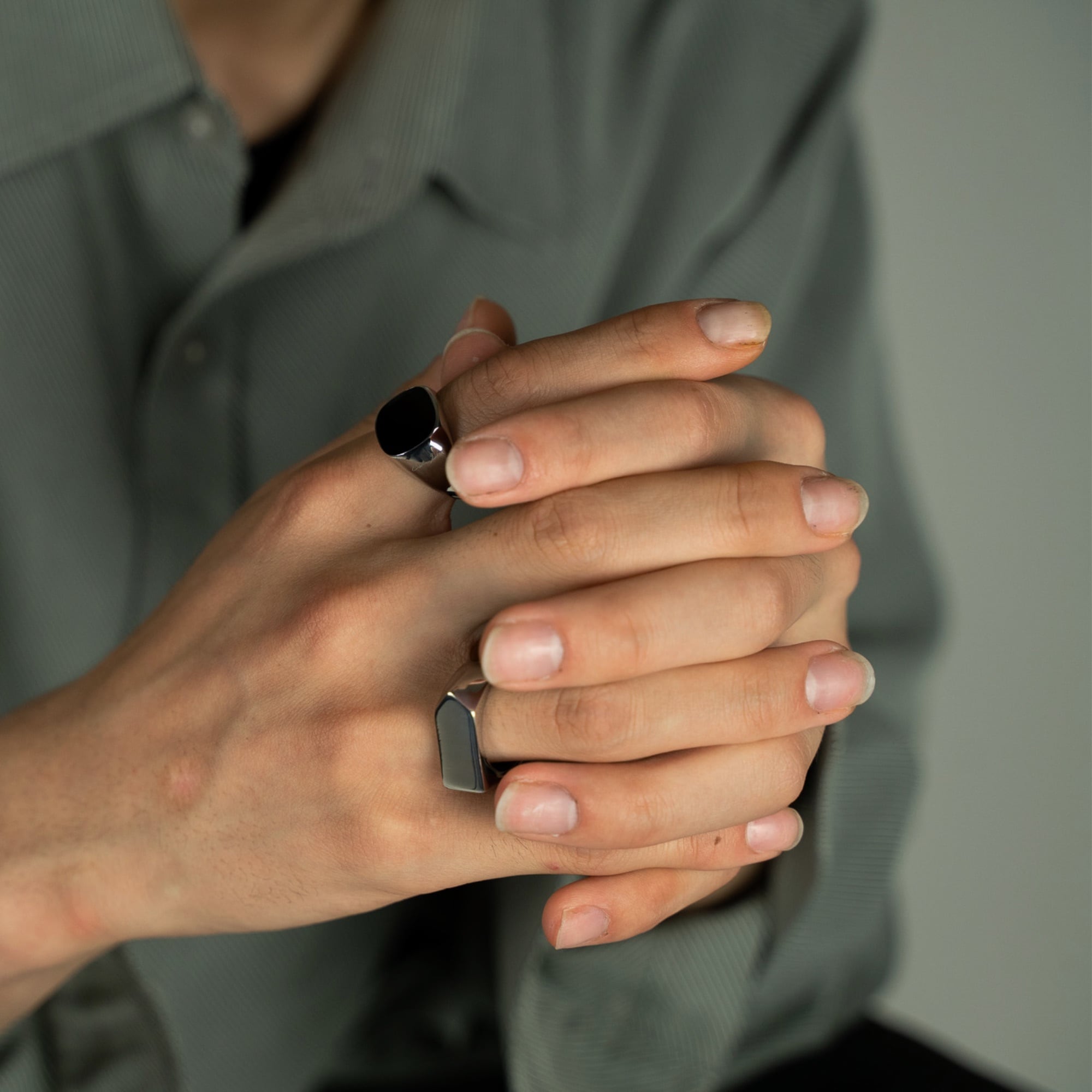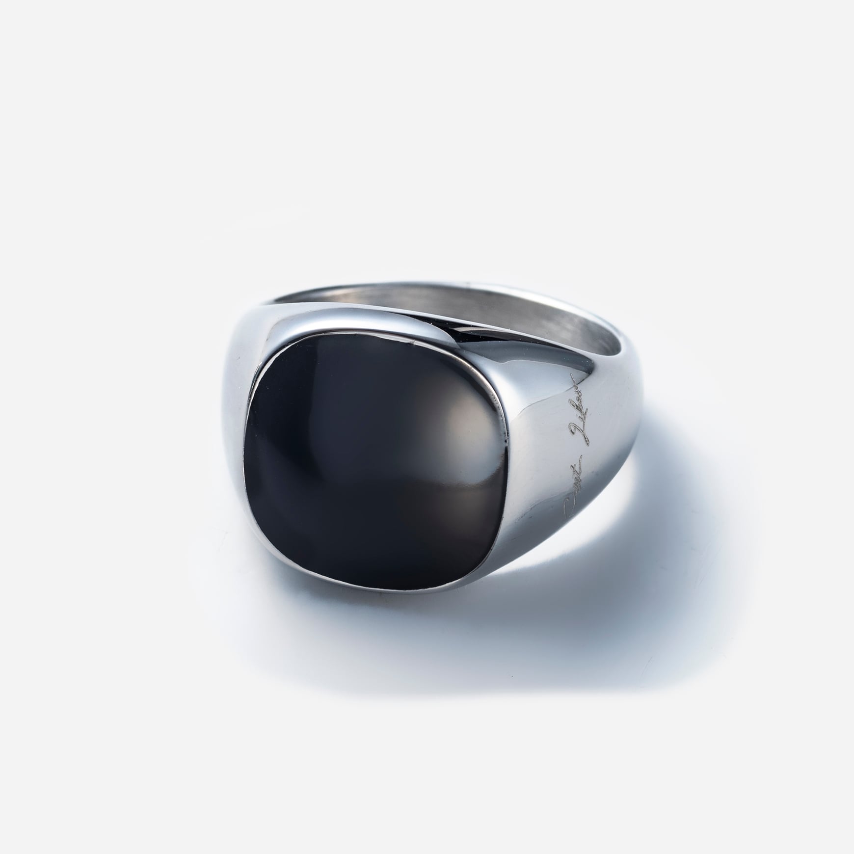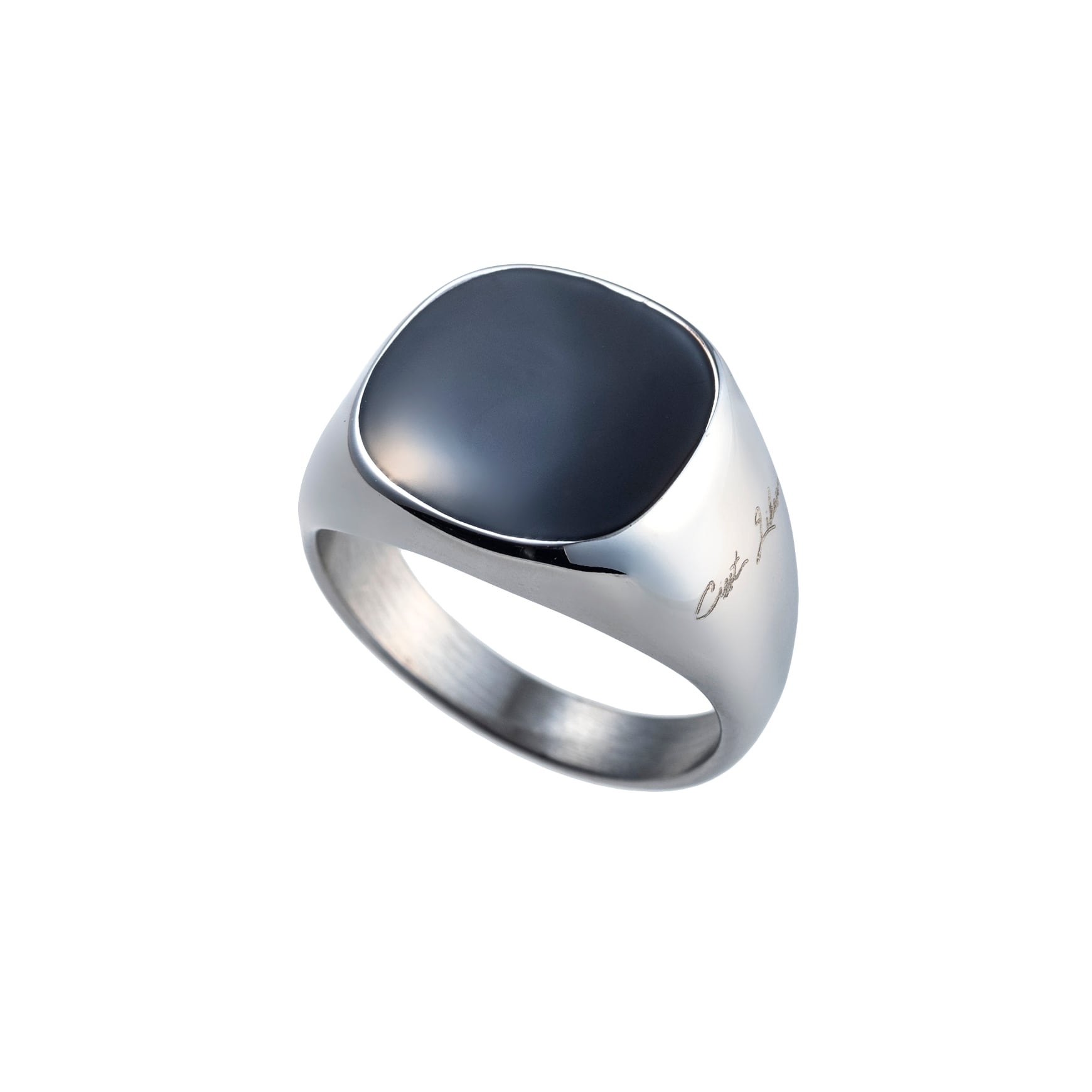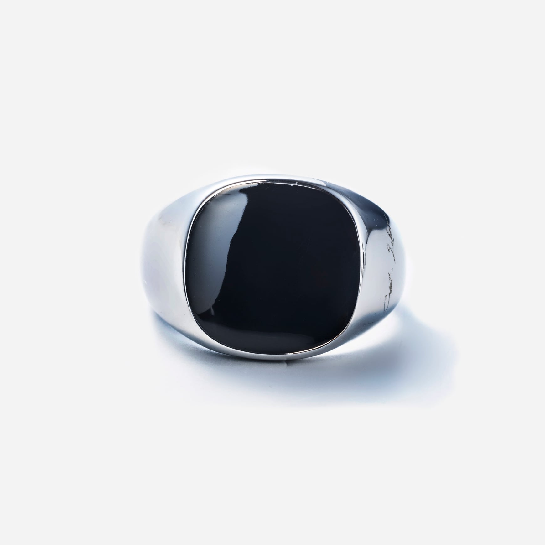 シンプルですっきりとしてフォルムの印台リング。ゴールド×ブラック、シルバー×ブラックのツートンカラーにすることでメリハリをつけ、光沢のあるブラックは指輪1つでファッションのポイントになります。細部までこだわり抜きとてもバランスが良いデザイン性で貴方の魅力をより一層高めます。