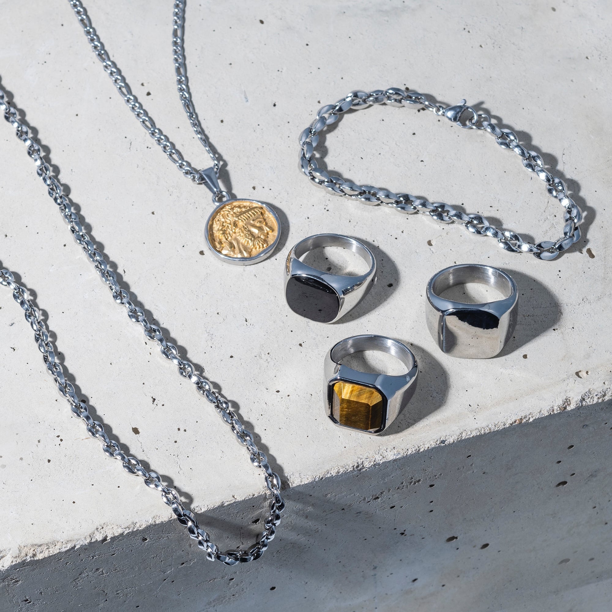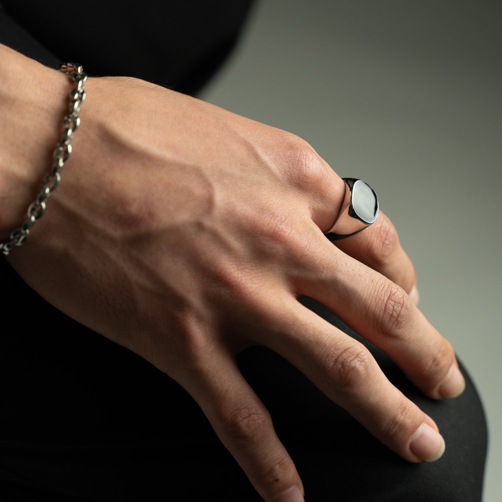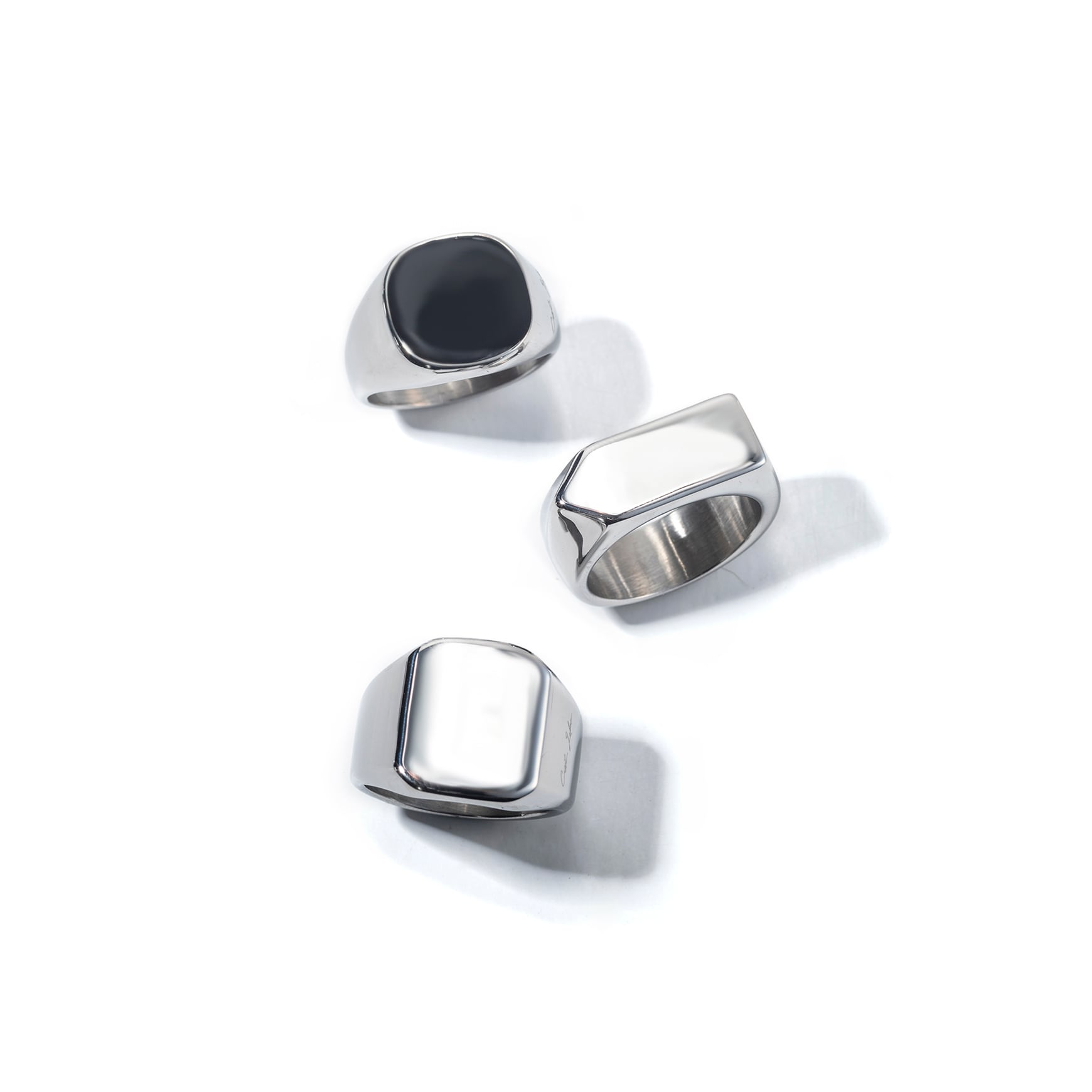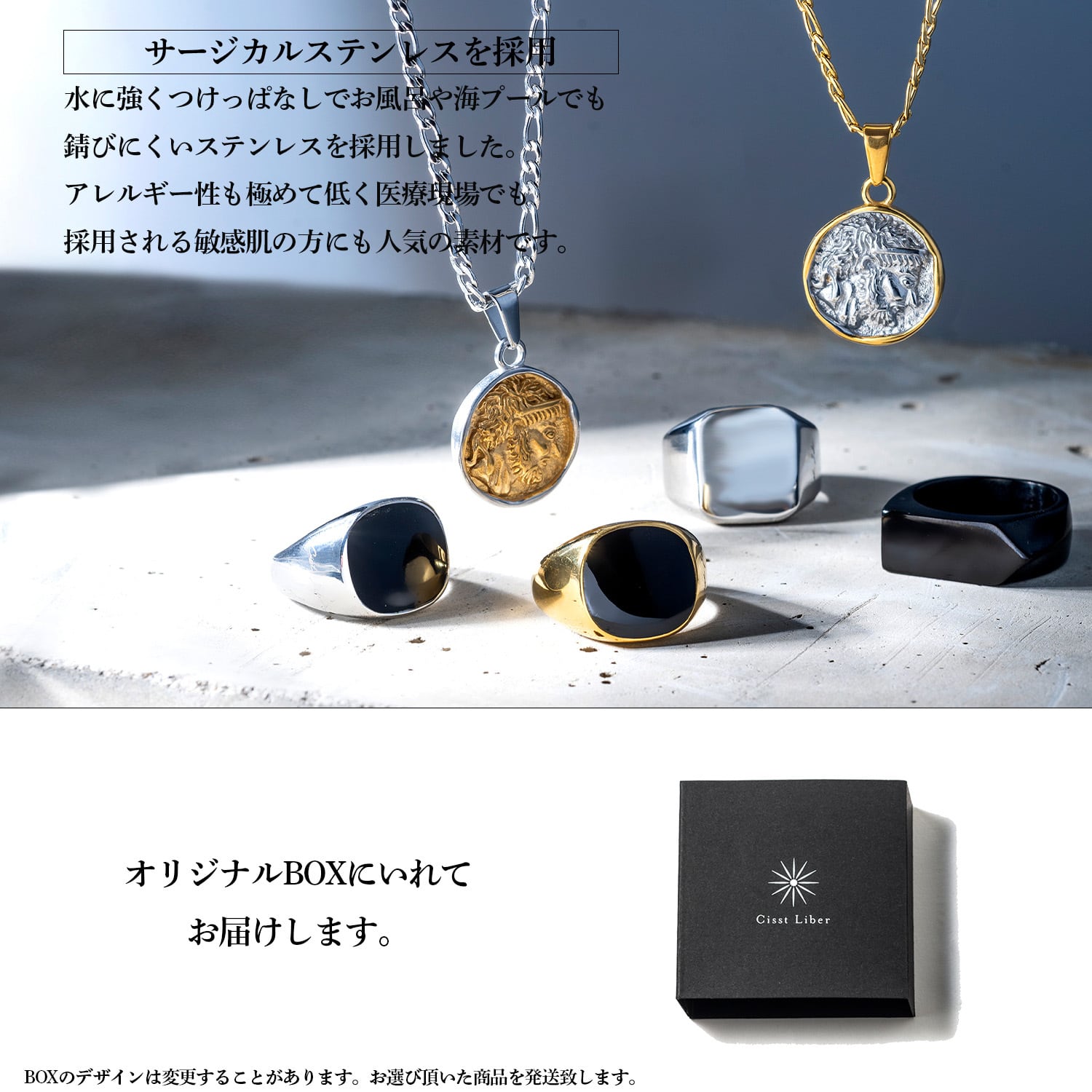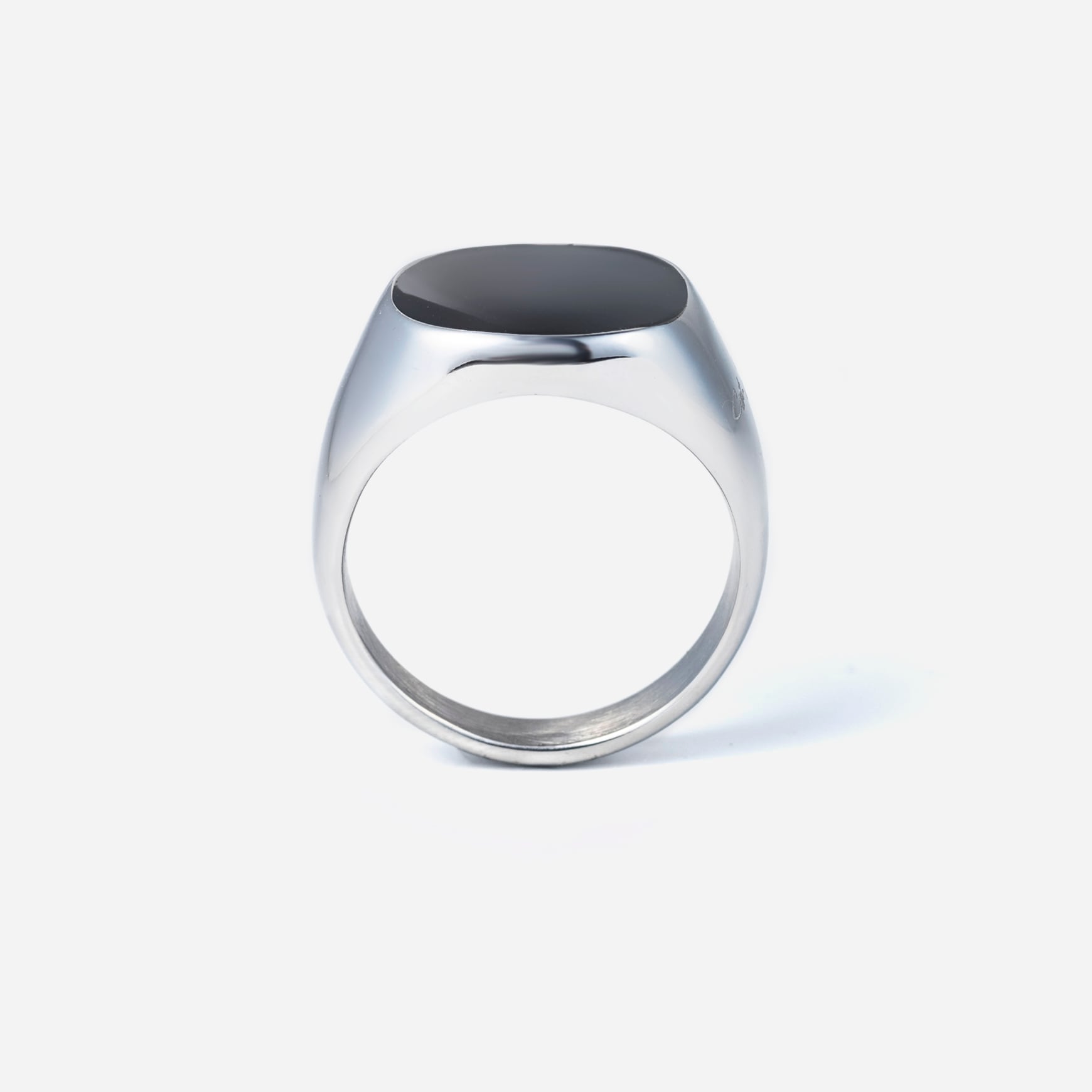 シンプルですっきりとしてフォルムの印台リング。ゴールド×ブラック、シルバー×ブラックのツートンカラーにすることでメリハリをつけ、光沢のあるブラックは指輪1つでファッションのポイントになります。細部までこだわり抜きとてもバランスが良いデザイン性で貴方の魅力をより一層高めます。