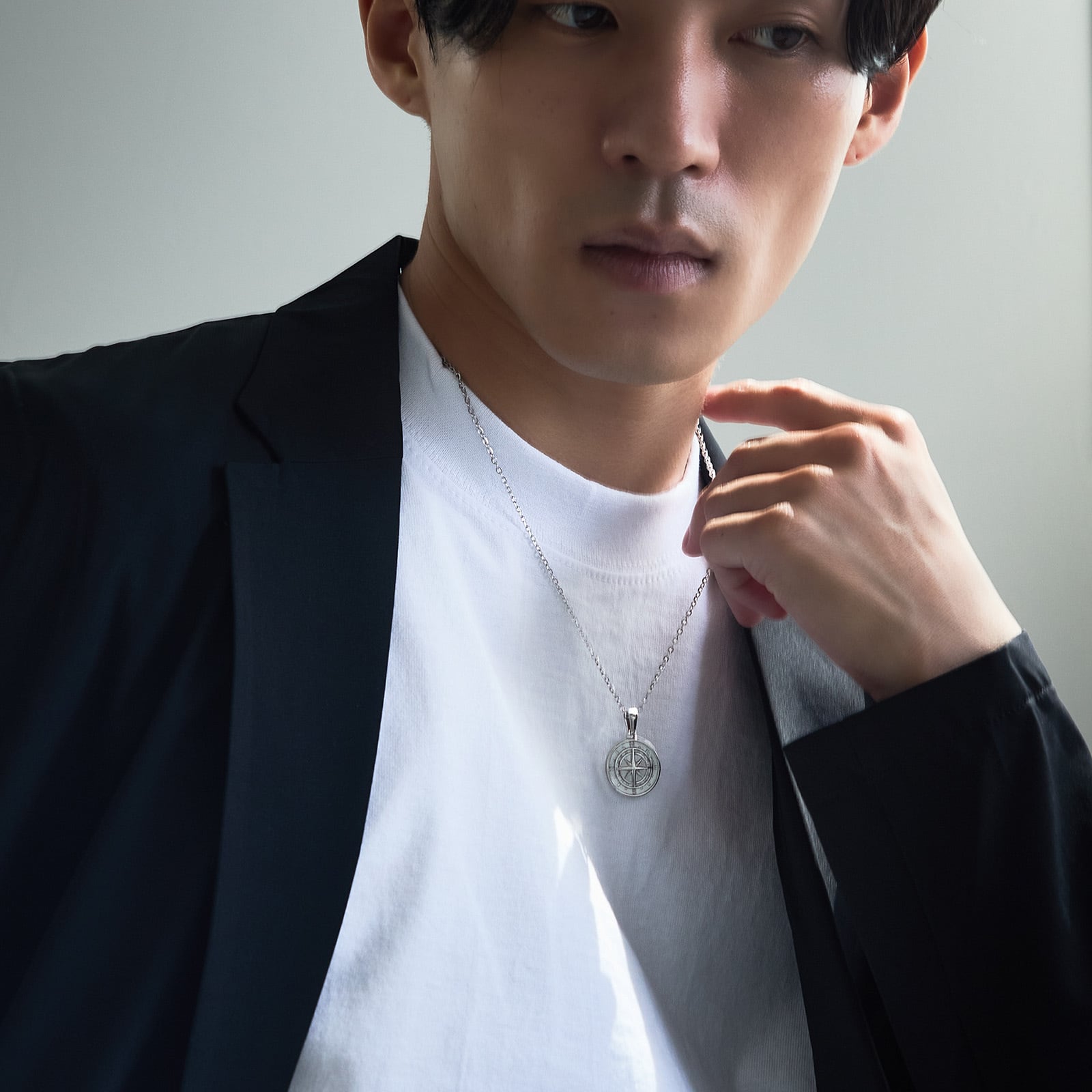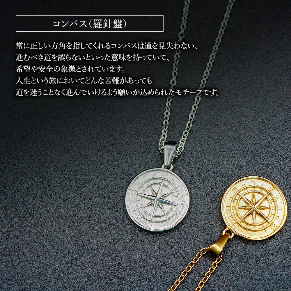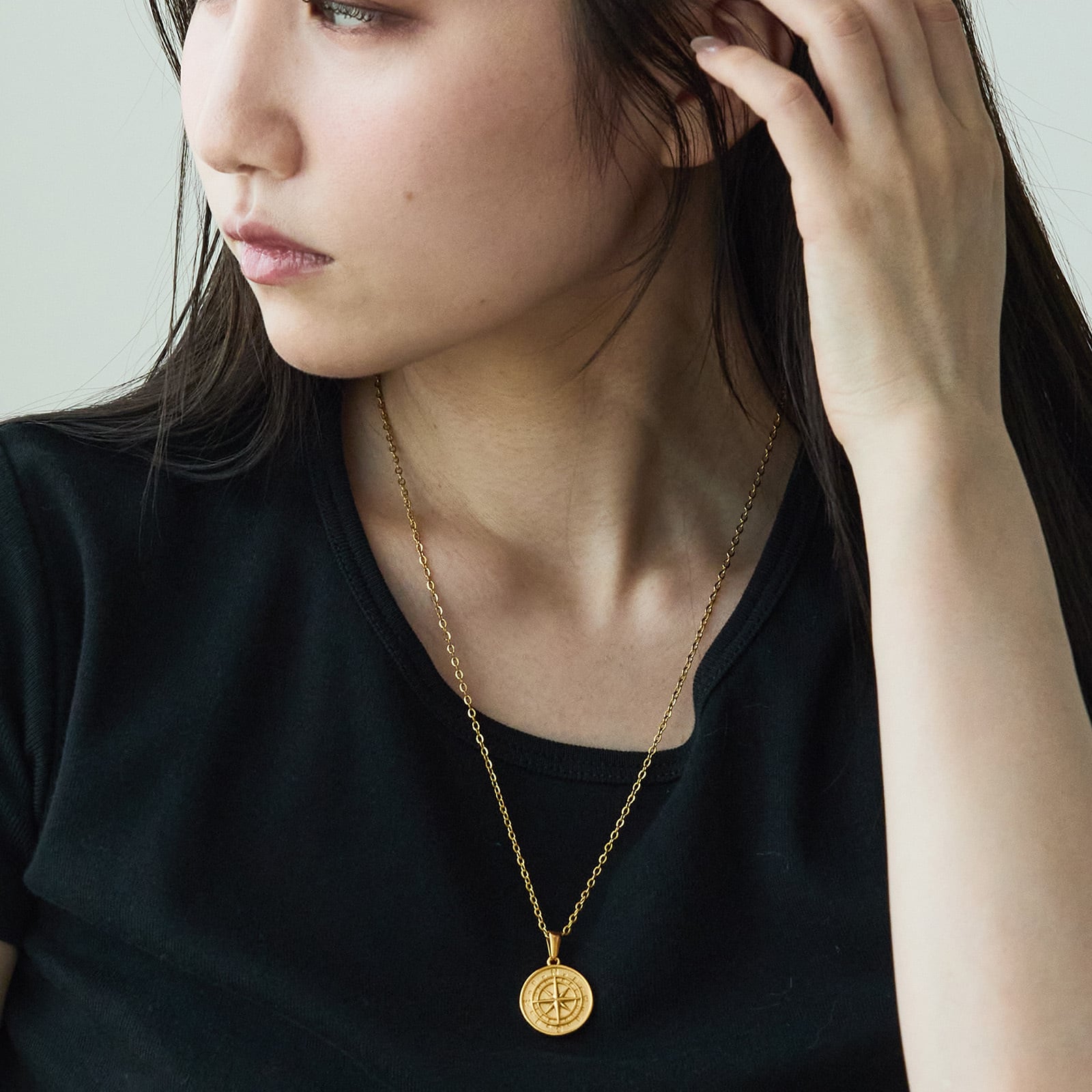 【希望や安全などの象徴とされているコンパスをモチーフにしたお洒落なコインネックレス】