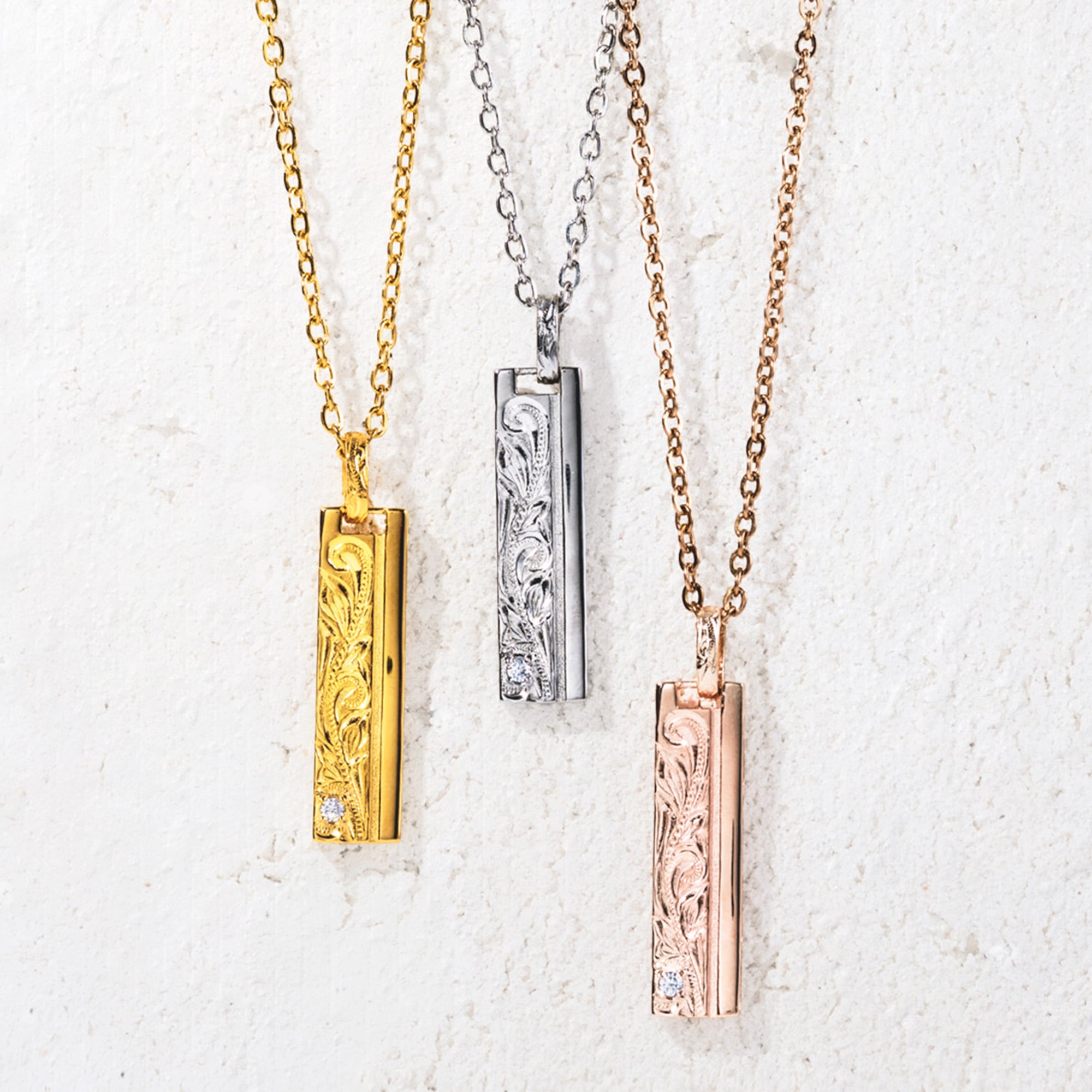 シンプルなプレートにハワイアンジュエリー特有の模様を施したデザイン性。様々なファッションにも合わせやすく色々なシーンで活躍します。
