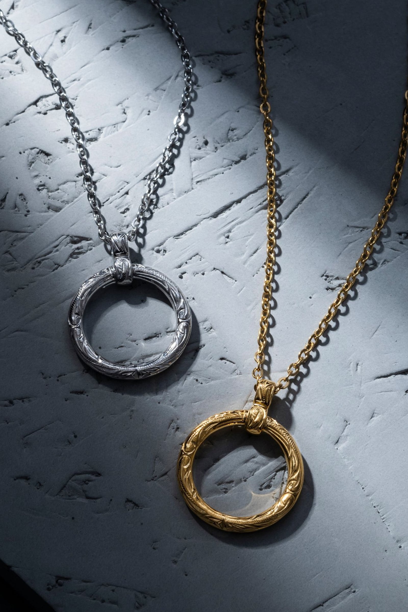 波(スクロール)をモチーフにしたデザインのリングネックレスです。